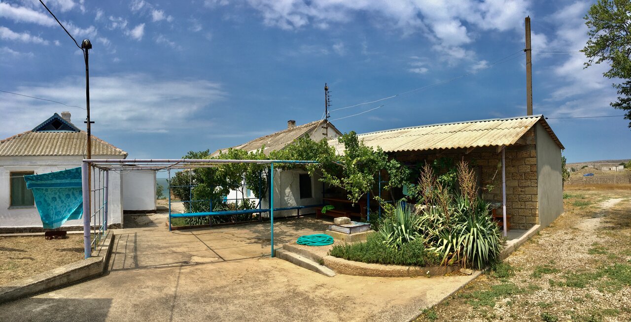 Останавливались в компании друзей па неделю. Всё затасканное, но добротное. Тихое, спокойное место в удалении от всех домов Золотого, стоит на возвышенности. Мы жили в самом дальнем домике, на солнечной стороне — каждое утро просыпались под соседского петушка и красивые виды из окон. Есть собственный спуск на пляж (в начале августа есть медузы), песчаный и ракушками. В окрестностях есть неплохой сельпо, всё необходимое можно докупить. Для любителей бюджетного полу-общажного отдыха (общия кухня, туалет и душ) — очень неплохой вариант. У собственников есть контакт местных производителей продуктов, могут привести молочку, вина и фрукты по заказу. Рядом расположен Каралакский заповедник, где нет никакой связи (как и хорошей или хотя бы посредственной дорожки — заповедник все таки), зато присутствуют дикие пляжи в неичислимых количествах.
