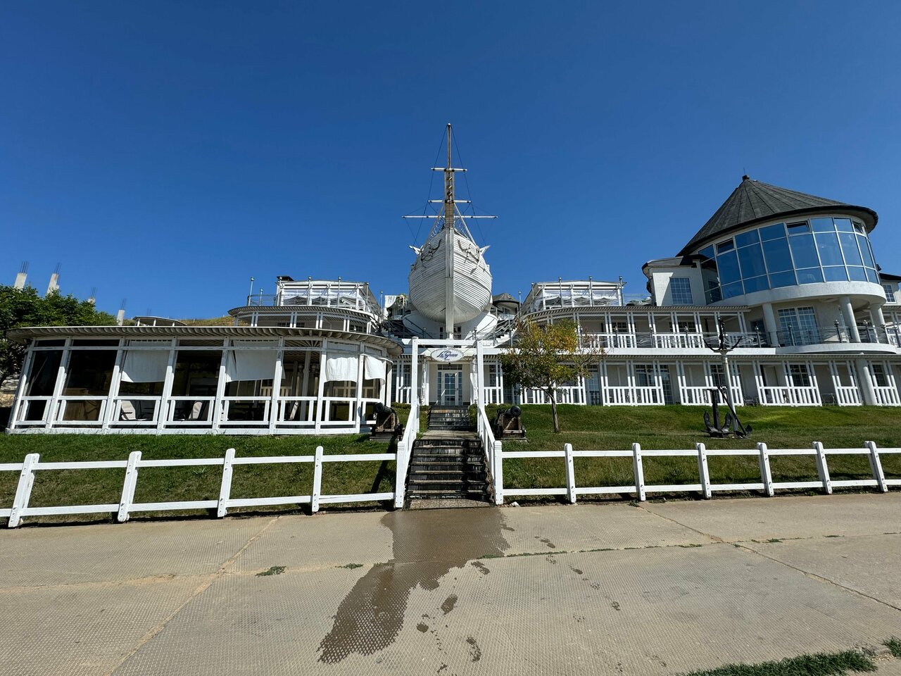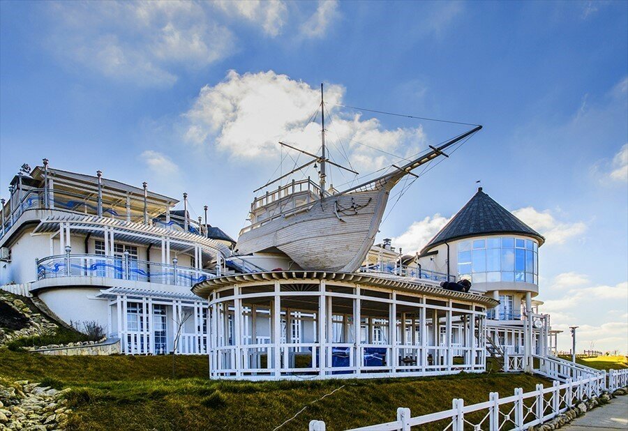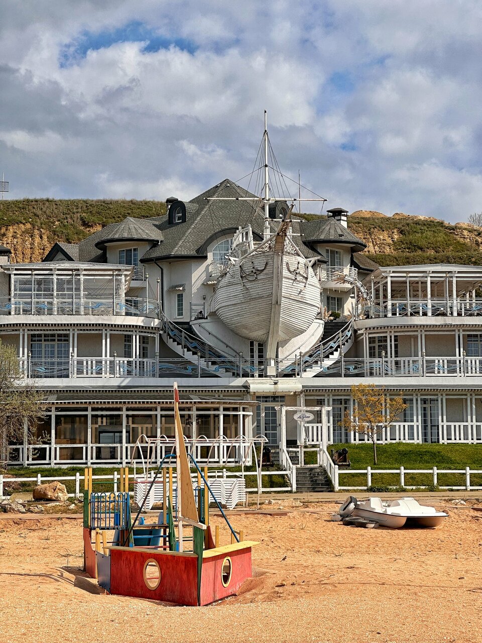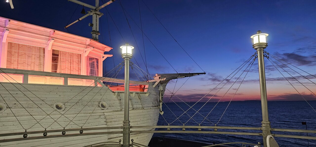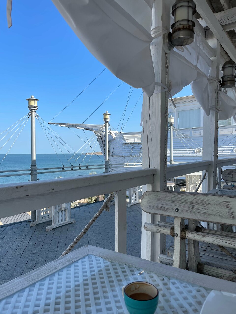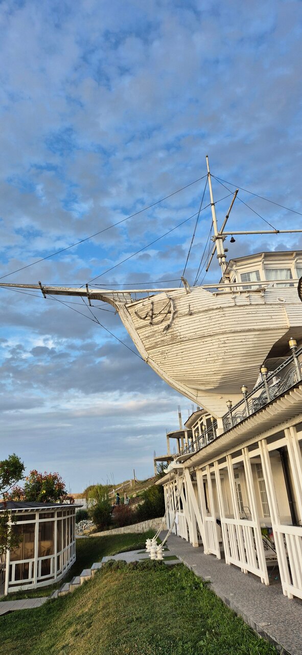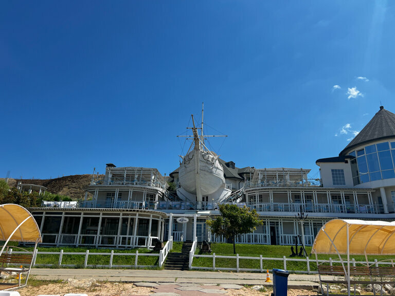 Ресторан с хорошим видом и не плохим меню. Крымские дары моря и вина мировых производителей. Садитесь на втором этаже у окна. Устрицы с белым вином и шикарный вид на корабль и пляж, что может быть лучше И сходите на палубу за памятными фотографиями.