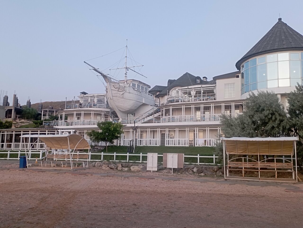 Были там только в ресторане, на побережье казантипского залива это единственное адекватное место, которое смогли найти Не могу сказать, что все понравилось ( за завтраком блины показались суховатыми и ягодный морс — компот из сухофруктов) но обстановка очень приятная и на уровне Москвы, как и обслуживание (чего я не нашла в других местных заведениях) в целом еда вкусная, попробовали жульен с рапанами- неплохо!
