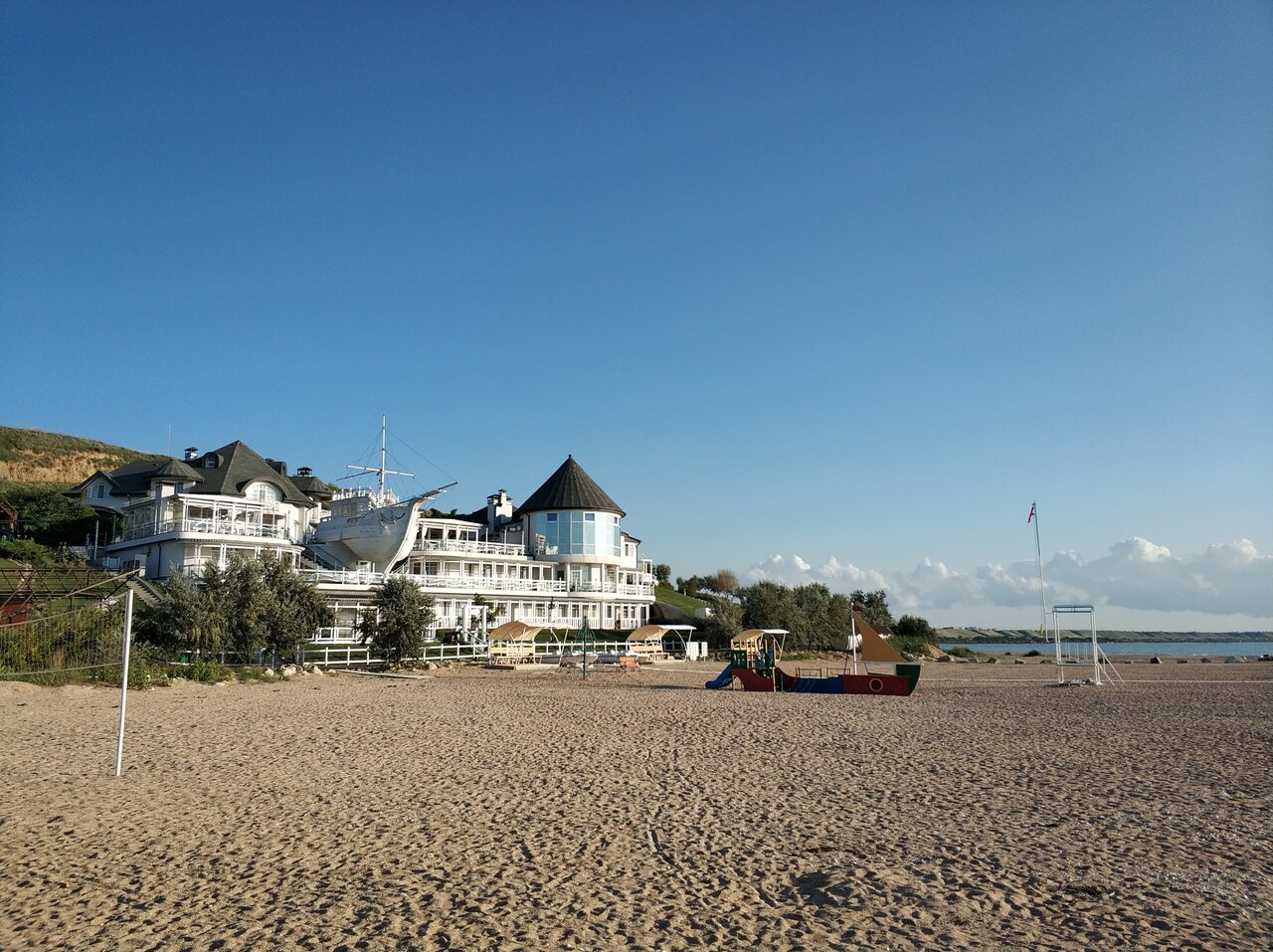 Непосредственно возле моря, парковка небольшая, номера средние, убраны посредственно! Персонал приветлив, но критическое мышление отсутствует, решить проблему пользу постояльца не могут. В ресторане отличные блюда, цена выше среднего, оплату по терминалу стремительно отговаривают. Бассейн отсутствует, для детей минимум развлечений, няни нет. Поеду ли еще раз, скорее всего нет, если сложить сумму проживания и питание в ресторане, то выходит чуть дешевле чем в Рига виладж.