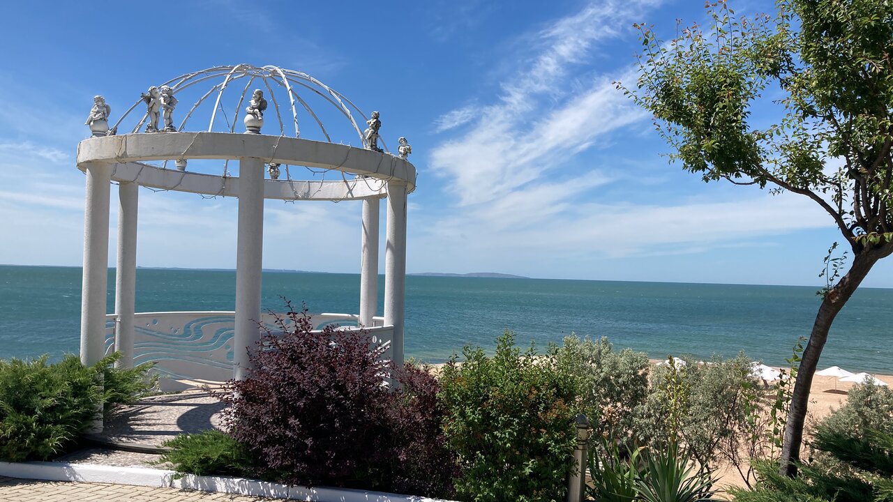 Все прекрасно: интерьер,природа,парковочные места,локация,персонал.Вкусная кухня,прекрасный вид на море на летней террасе,дорога из г.Керчь также отремонтирована