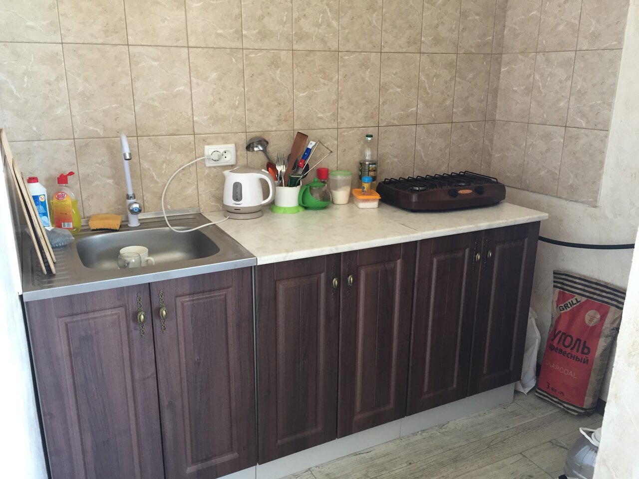 Чисто, хорошо оборудованная кухня. Приятная хозяйка. 50 метро до моря.