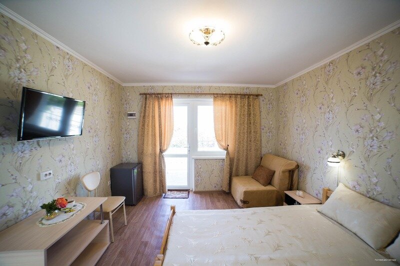 Отдыхали в гостевом доме у Светланы, остались довольны. Чистые комфортные номера с хорошим ремонтом. Есть кондиционер, телевизор, в номере был туалет с душевой. Питание хорошее, три раза в день. Если что в меню не нравится, предложат замену. До моря 5 минут. Цена была всего 2000р за сутки (двухместный номер). Рекомендую всем, кто привык отдыхать культурно.