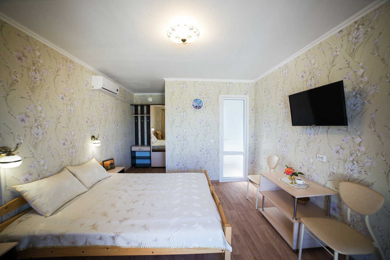 Номер с двуспальной кроватью и дополнительным диван-кроватью, кондиционер, WI-FI, TV, душ, санузел.