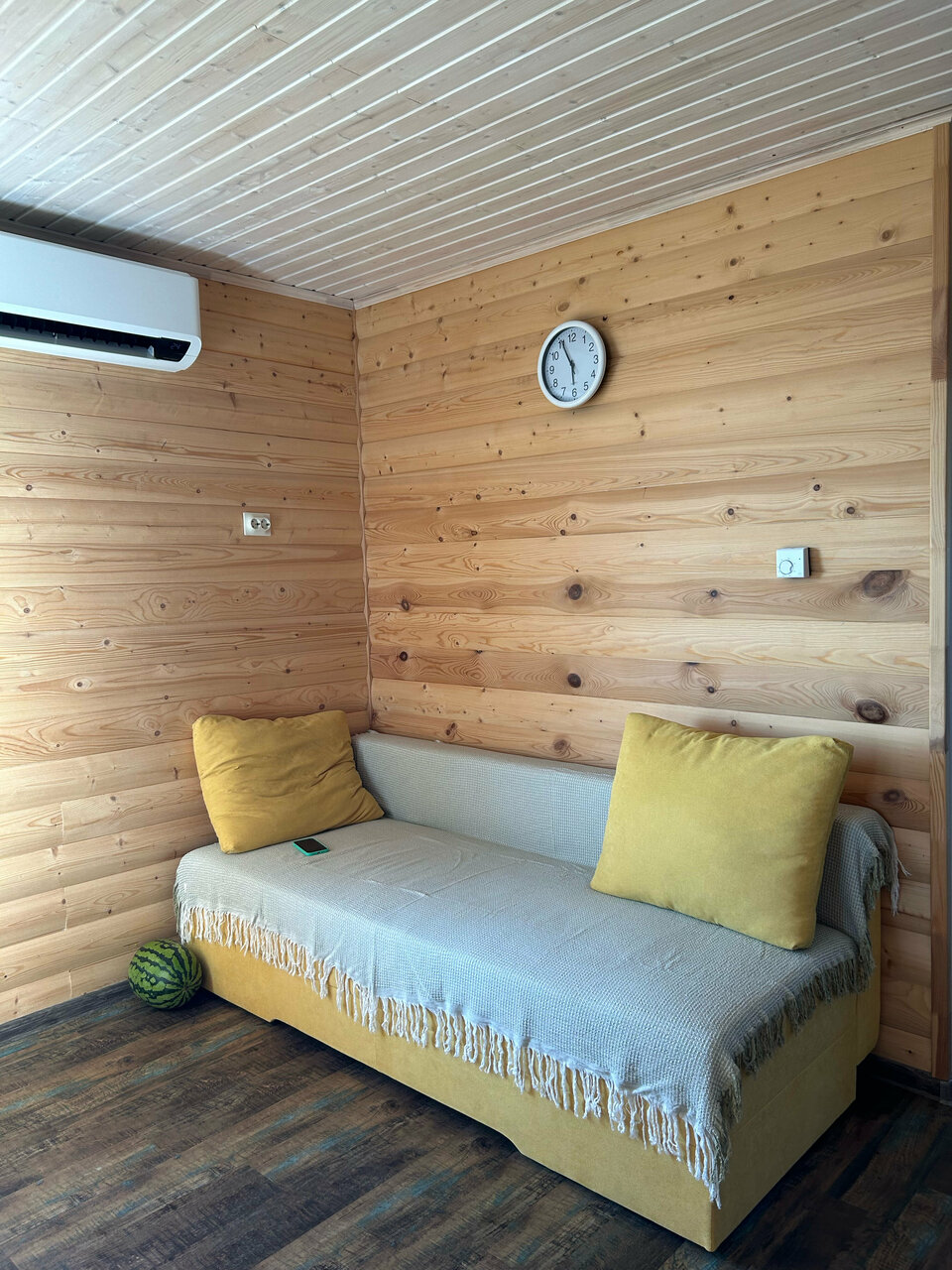 Вместительные 5-местные домики со всеми прелестями цивилизации: горячей водой, душевой, камином и кондиционером, Wi-Fi и невроятными видами на закат/восход над Волгой. Оснащены комфортной кухней с посудой и холодильником.