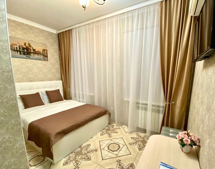 Удобное расположение гостиницы. Рядом автовокзал. Удобные, чистые номера. Приветливый, добросовестный персонал. Задний дворик очень уютный и красивый. На заднем дворе, в отдельном здании отличная сауна с бассейном и бильярдом, а также хамам с красивой зоной отдыха и бильярдом. По желанию, можно заказать завтрак, обед и ужин.