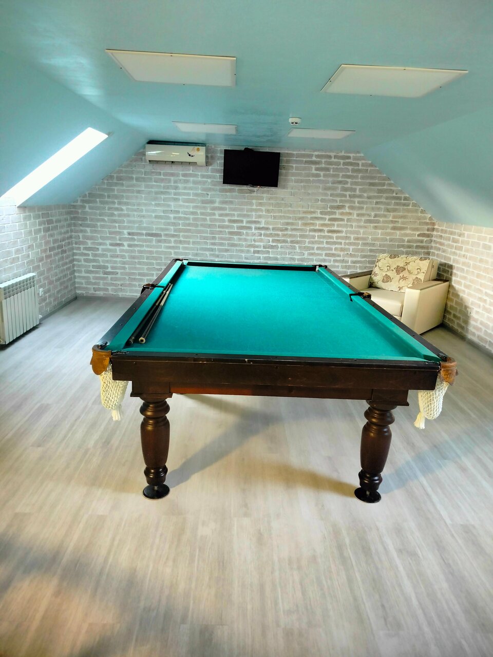 - Уютная и чистая обстановка.; Вкусные завтраки (возможность заказа).; Кухня с холодильником, СВЧ, чайником, термопотом.; Красивый и уютный задний дворик.; Наличие бильярда, мангала, зоны отдыха.