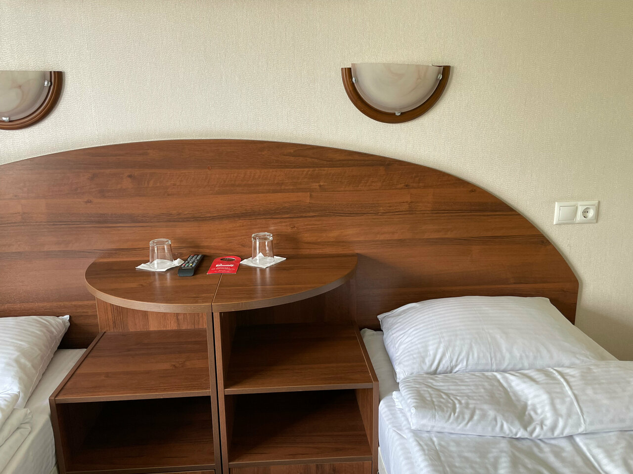 Гостиница нам понравилась. Чистый, аккуратный номер, с нормальным шкафом, приятный персонал. Не понравилась кровать, мы заплатили большую стоимость за НЕ раздельные кровати, а получили просто сдвинуть вместе.