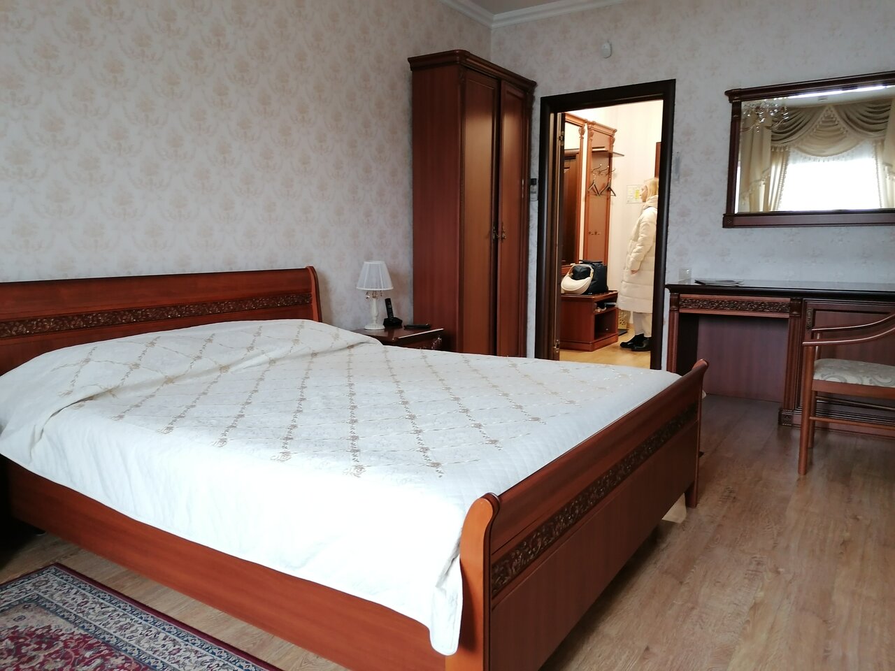 Мне понравилось расположение. На берегу большого пруда. И недалеко от Лавры и музеев. Скорее это ресторанно-гостиничный комплекс, заточенный на проведение банкетов, свадеб, локальных корпоративных мероприятий. Номера большие, несколько старомодные, все новое (останавливались в 2019 г). Акустика ? был занят еще 1 или 2 номера и никто никому не мешал. Шум с улицы присутствует, терпимо. В целом, вполне приличное место остановиться в Сергиевом Посаде. Есть своя небольшая автостоянка с видеонаблюдением и шлагбаумом.