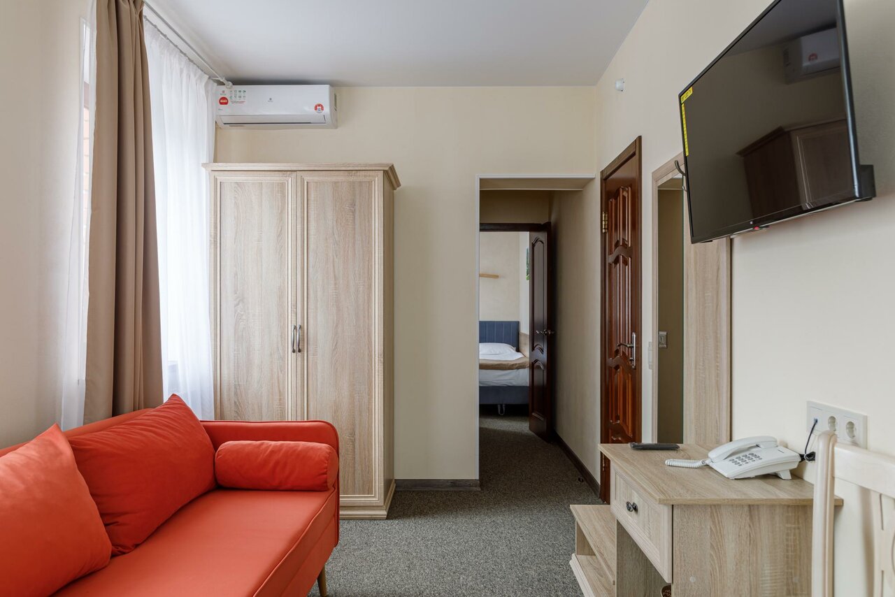 Очень понравилась гостиная , брал улучшенный номер . Номер большой , чистый, есть все кроме халатов . Завтрак приличный . На территории парковка . Рядом много кафе , смотровая площадка , шаговая доступность до лавра . Рекомендую .