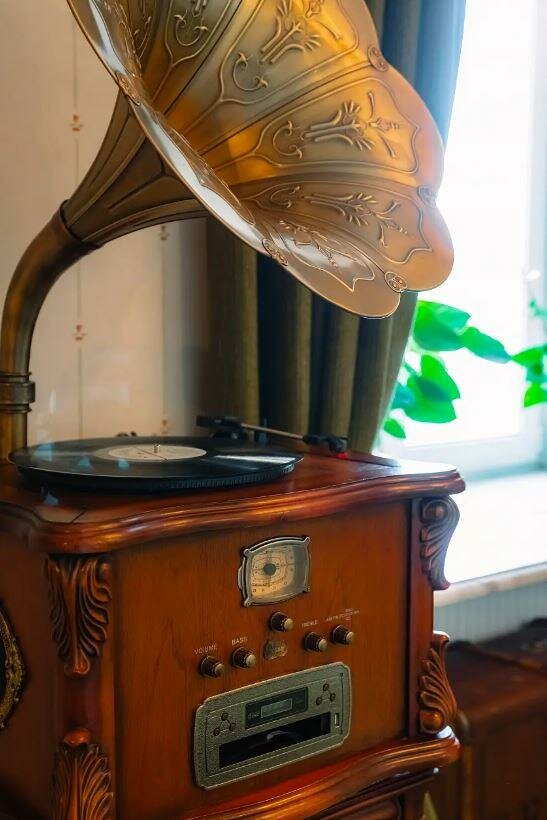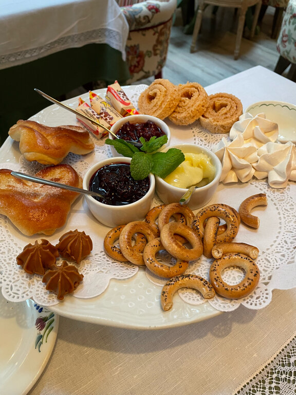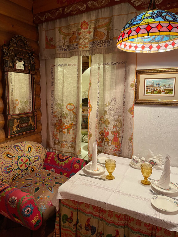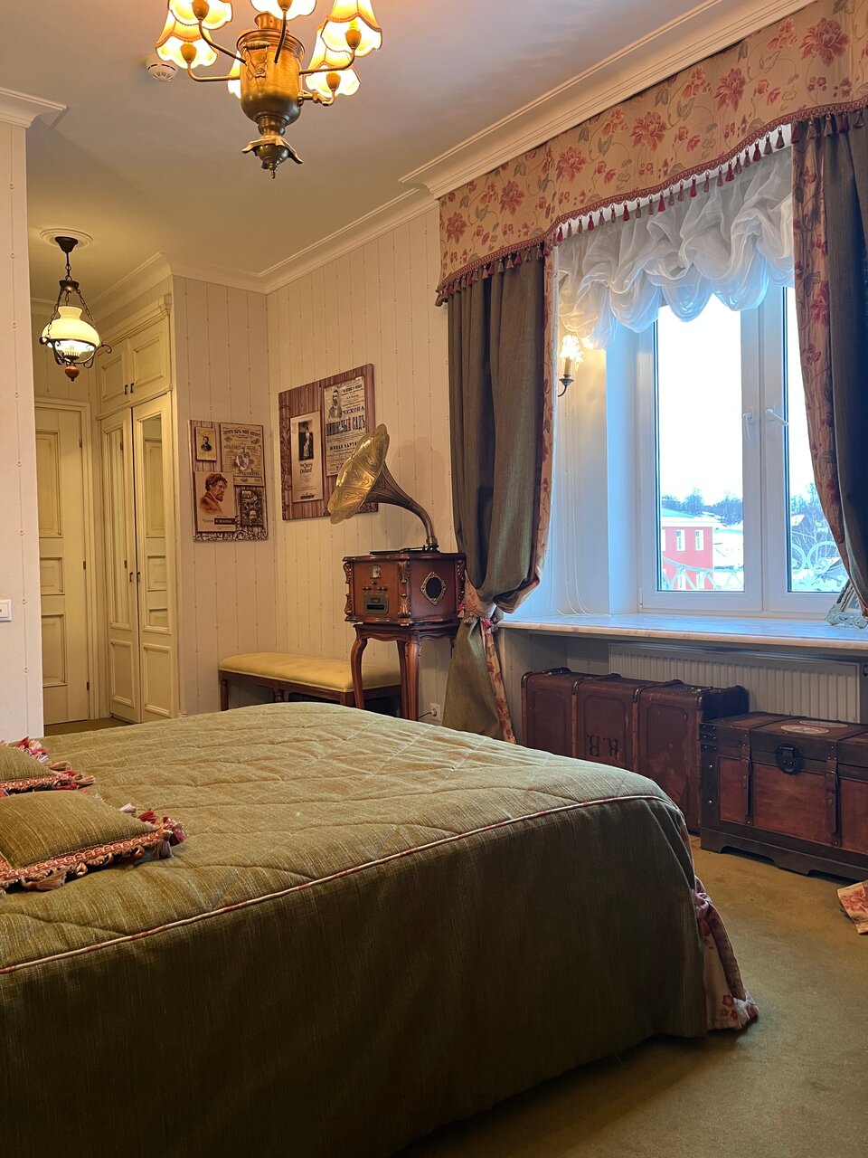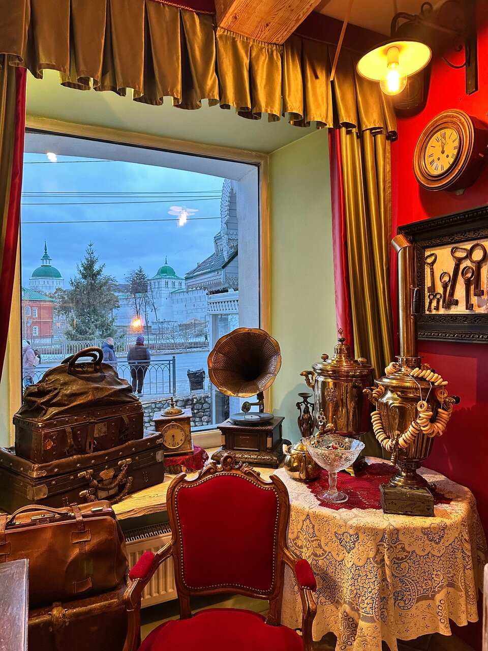Под одной крышей и бутик-отель, и ресторанный комплекс. И то, и то от души и очень рекомендую к посещению! Мы жили в номере ‘Шаляпин’ и слушали пластинки, отдыхая после прогулок по городу. Завтраки прелестны. Вид из окна на Троице-Сергиеву Лавру.