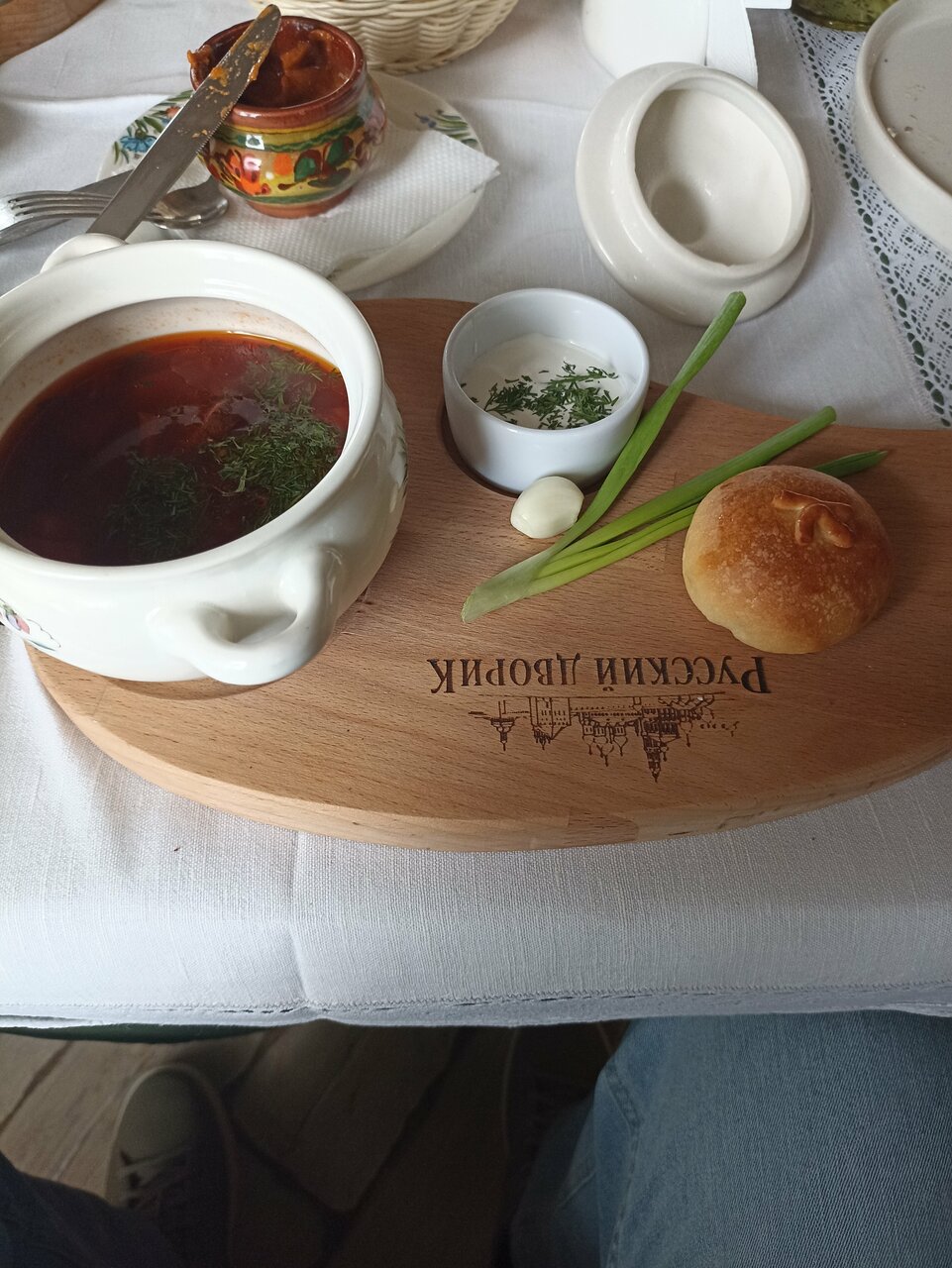 Еда нормальная, не сказать, что очень вкусно, обыкновенно. Но работа администрации отвратительная! Специально заранее приехала, чтобы заказать столик, выбрать видовые места, девушка провела по ресторану, показала залы, записала номер телефона, все согласовали. В итоге когда приехали отмечать золотую свадьбу родителей, нам заявили, что такого заказа нет, зал, в котором я выбрала место, вообще закрыт. В итоге нас посадили на второй этаж в душный зал, где мы как в бане взмокли и сидели на проходе напротив туалета! Короче, начало нашего торжества было омрачено! Подача блюд тоже оставляет желать лучшего, люди за соседним столиком тоже долго ждали и готовы были просить жалобную книгу. Резюме: неоправданно раскрученное место, типа интерьерный ресторан, но кроме этих интерьеров и зацепиться не за что! Рядом Дачная жизнь гораздо лучше!!! Больше не придём в этот Русский дворик!