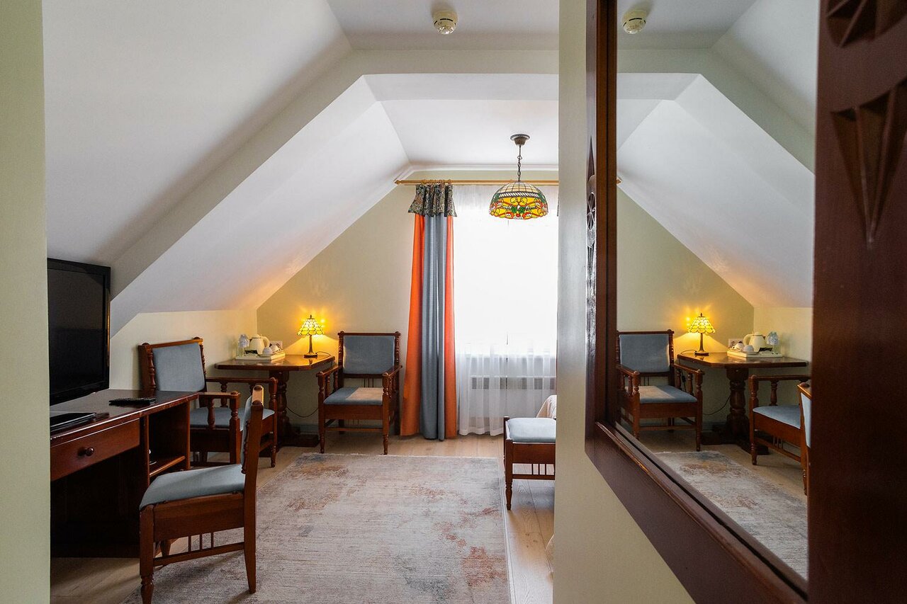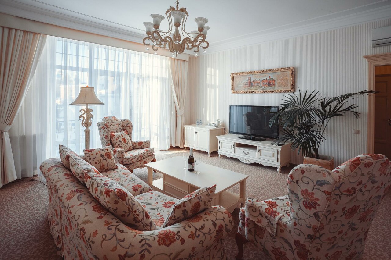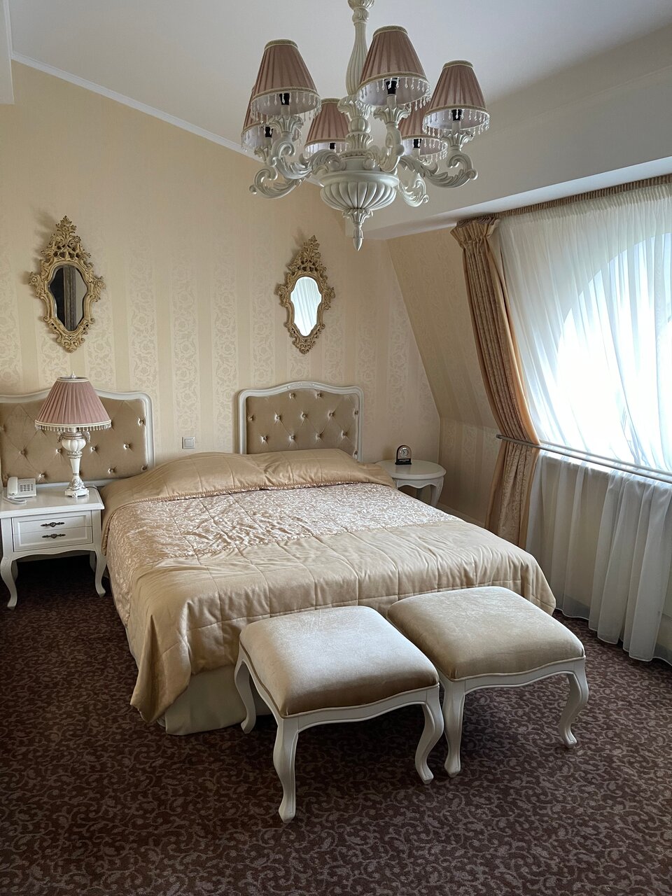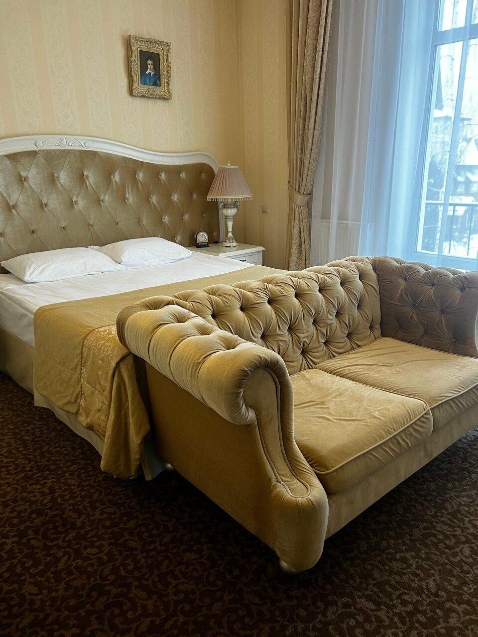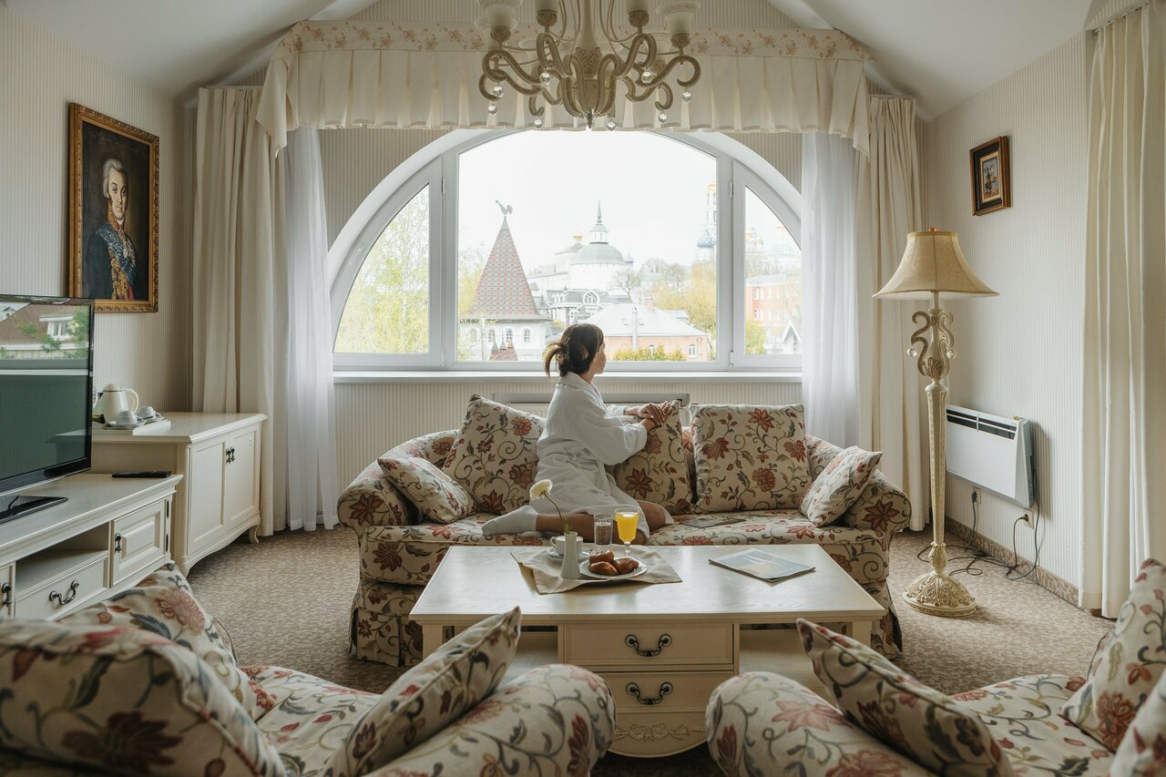 Государев дом 4*. Элегантный номер с двуспальной кроватью и диванной зоной, с видом на Троице Сергиеву Лавру.