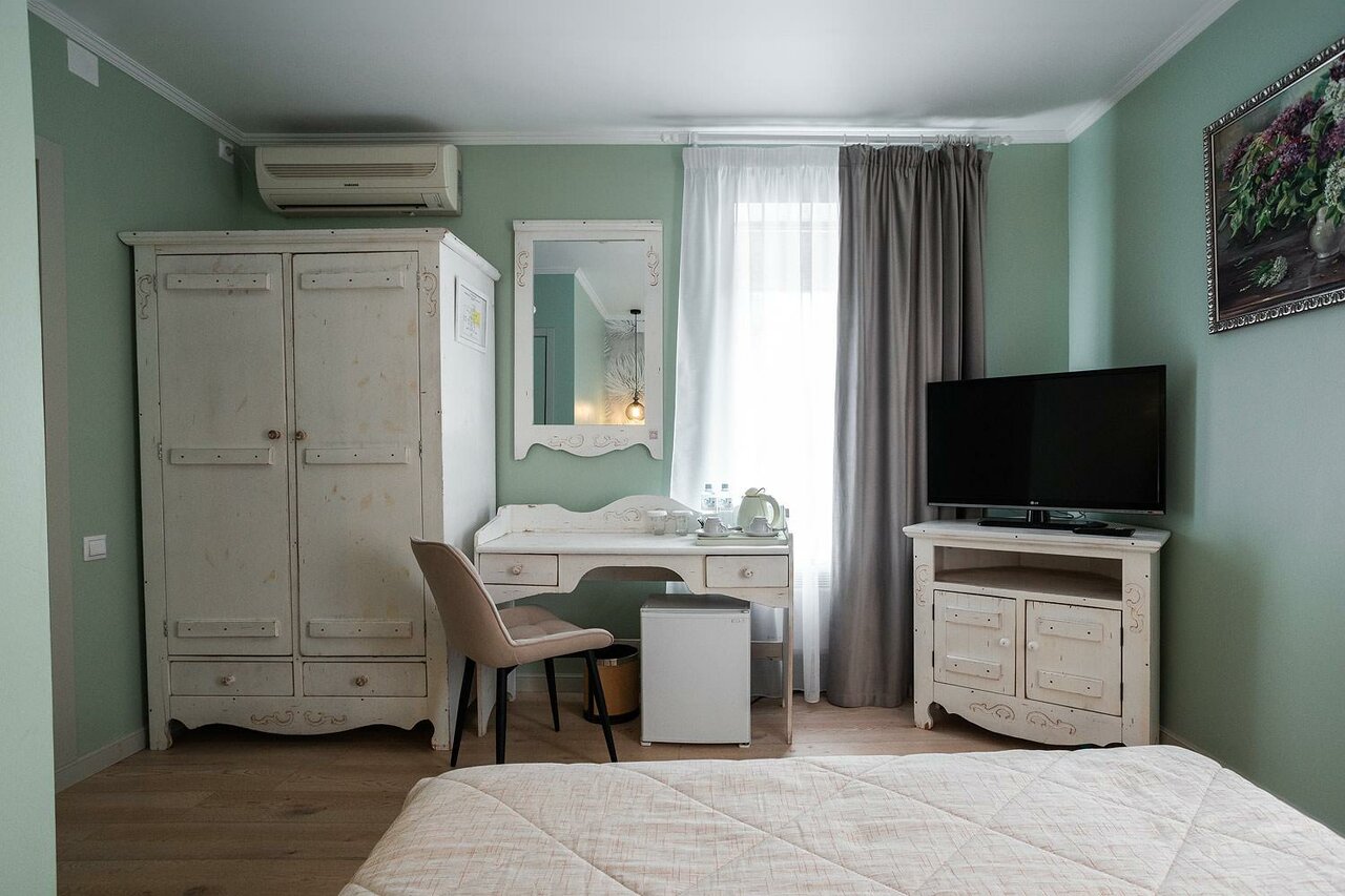 Чистый и уютный номер во флигеле, хорошие завтраки отличный зал для мероприятий. Вокруг настоящая среднерусская городская застройка. Персонал отзывчив, кухня на обед разнообразная русская и европейская. На территории небольшая парковка для гостей.