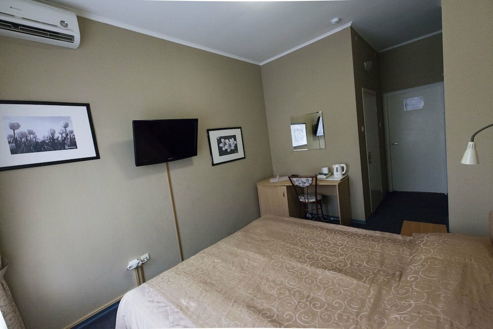 В общем хороший отель рядом полно и похуже.В номере эконом телевизор много каналов и душевая с туалетом чесно говоря душевая не впечатлила пластиковая душевая кабина горячей воды не дождался пришлось мыться холодной.В остальном всё хорошо в номере есть холодильник электрочайник и даже пакетики с чаем сахаром и кофе чашки с ложками тоже есть.В цену входит завтрак из небольшого меню которое находитсч у консъержа на первом этаже там можно выбрать время и что вы будете на завтрак.В общем отель понравился совсем недалеко от лавры единственное мне не повезло с горячей водой.