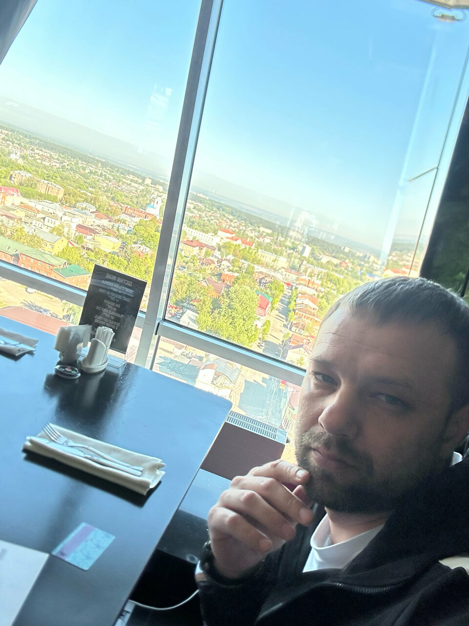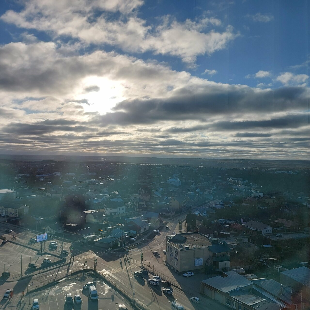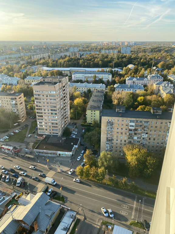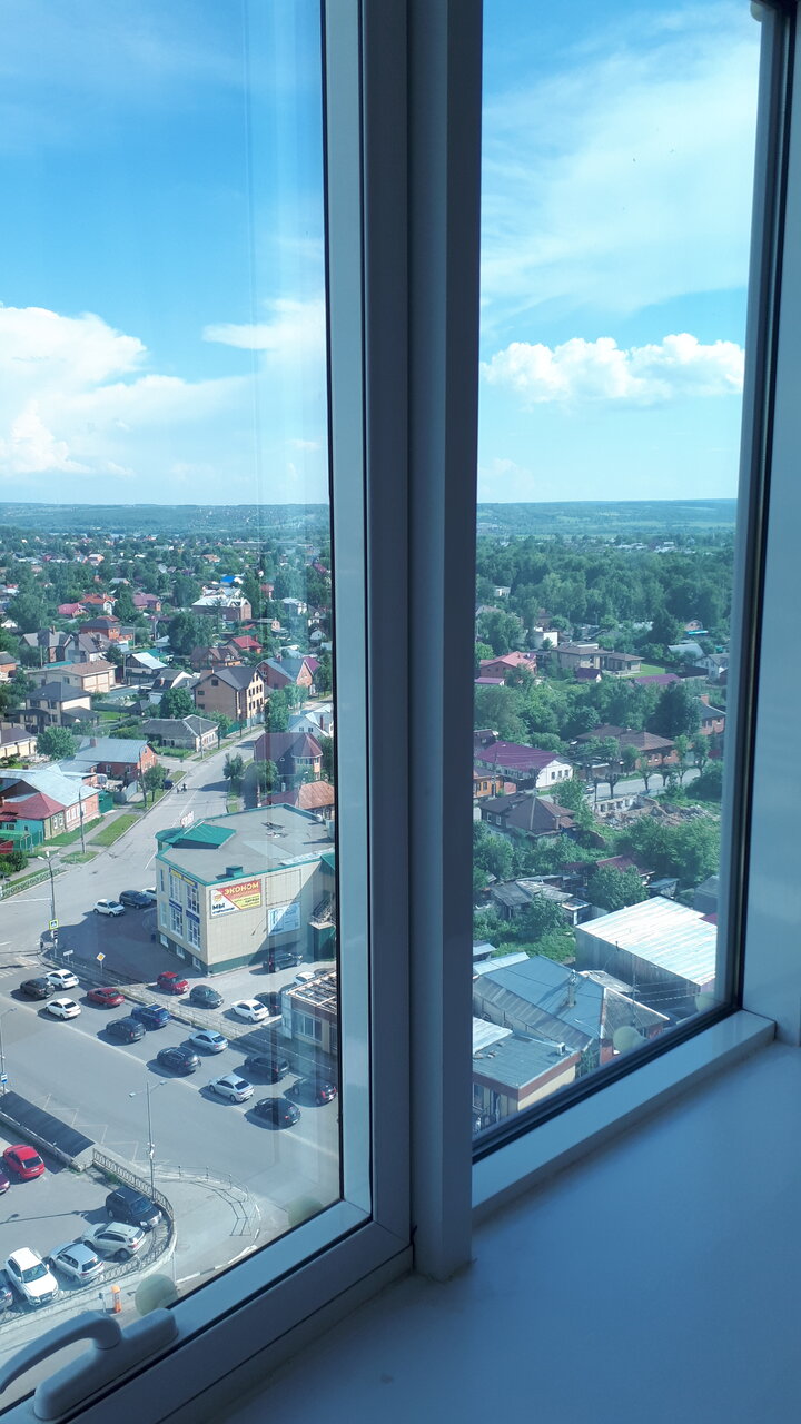 - Вид из окна на город.