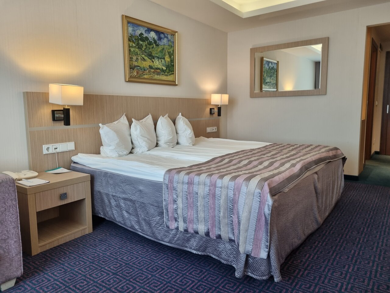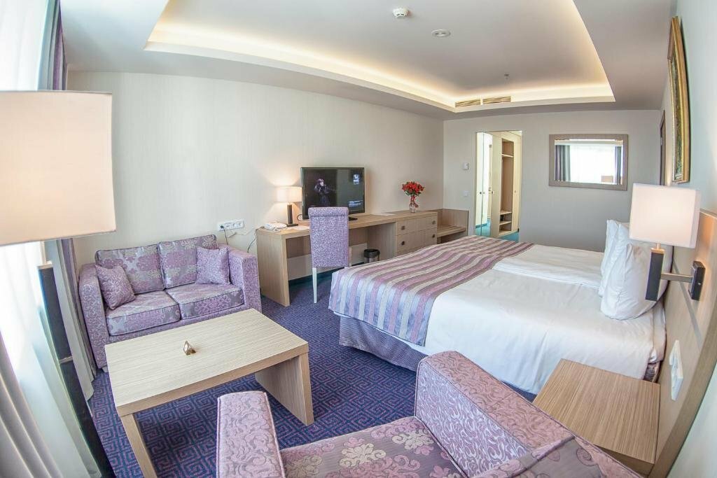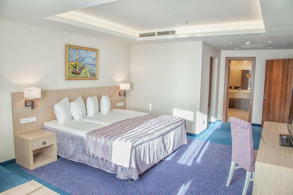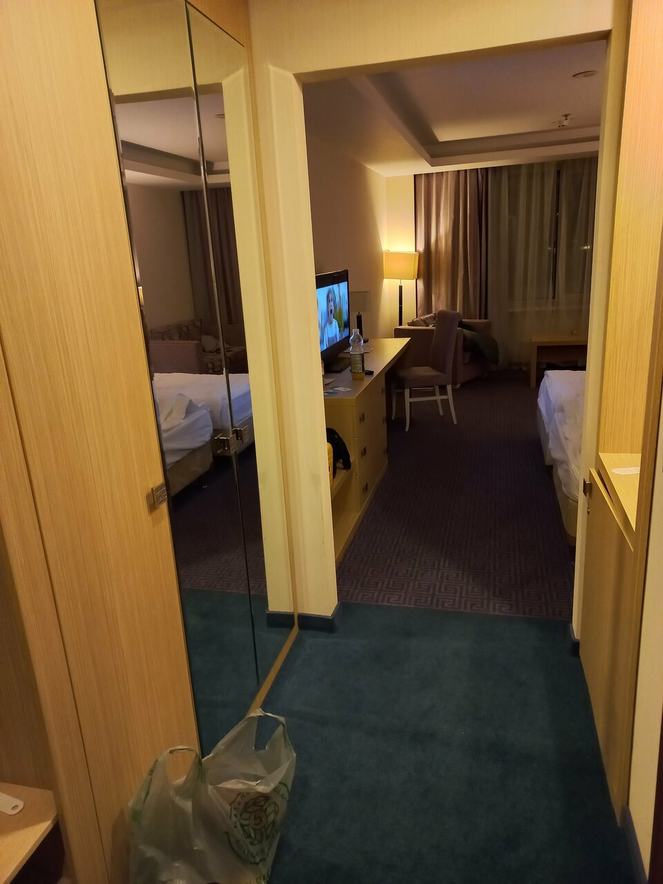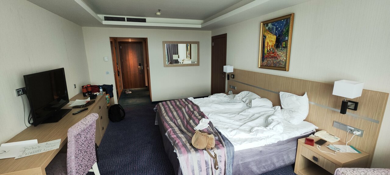 По номеру никаких претензий нет, всё чисто аккуратно, хорошо. Но спать в этом отеле не возможно!!! Всю ночь просто хреначила дискотечная музыка!!!! О том что в отеле, где как предполагается люди должны отдыхать, у тебя над головой будет дискотека, даже и подумать не могли, зато когда включается телевизор там красивая заставка с названием отеля и надпись спокойствие и комфорт. Очень сильно жалеем что выбрали этот отель…
