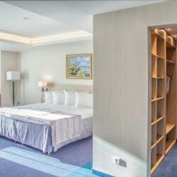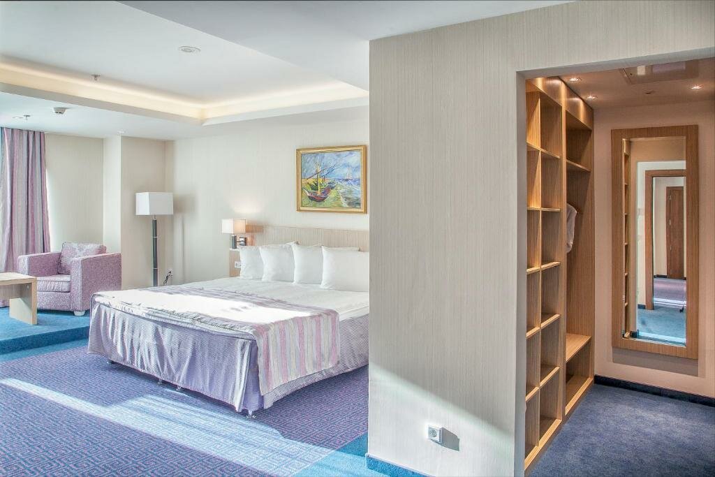 Были с 05.10.2023-07.10.2023. Хорошая, современная гостиница. Вкусный завтрак, официанты готовы моментально выполнить просьбу. Единственный минус на завтрак кофе машина, очень медленно работает. Номер был чистый большой. Отличная огромная кровать с белоснежным бельём. Жили на 13 этаже, дискотеку не слышали, хотя она была. Из минусов в баре не было разливного пива, хотя апероль был выше всех похвал. Милая девушка официантка не один раз подошла спросила нравится ли все, что- нибудь принести. Очень приятно. Расположение нормальное, центр город, не далеко парк, на территории гостиницы торговый центр с кинотеатром. Минус нет спа.