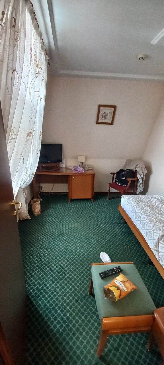 Гостиница на одну ночь. Вот вроде все не плохо, но кучка мелочей сводит на нет несомненные плюсы. Своя закрытая парковка , хорошая звукоизоляция. Но в номере стандарт на 2 человек, например, нет стола. Только прикроватные тумбочки и тумба под телевизором. Чай пить пришлось сидя в кровати. Окна старые деревянные. Без режима проветривания. Сеток нет. Берите фумигатор. Завтрак вроде хороший, но выпечка непропеченая. Вряд ли ещё раз здесь поселимся.