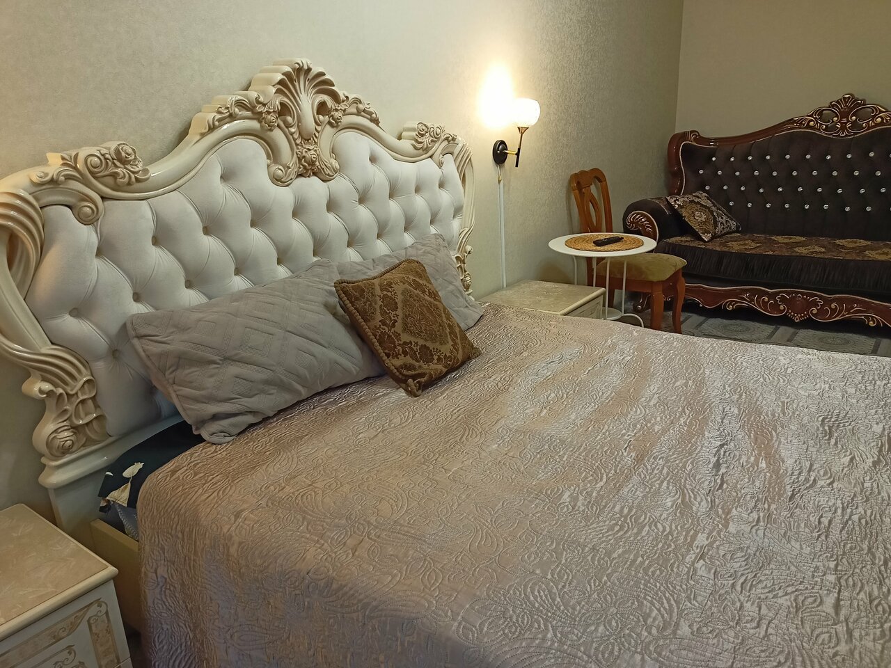 Очень милая обстановка,аккуратно в номере ,есть все для комфортного проживания.Душ ,ванна ,стиралка ,кухня полностью укомплектована! Теоевизор смарт, интернет шустрый.Парковка для грузовых КамАЗ ов шикарная.Рекомендуем!!! 10 баллов из 10 !!!