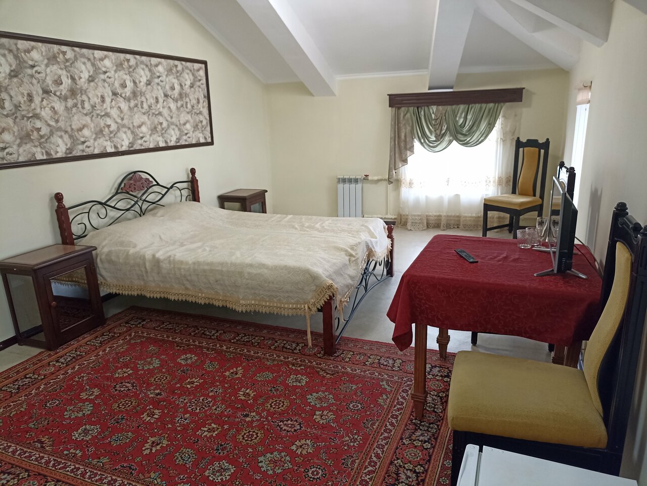 Предлагает недорогие номера (от 1000 до 4000 ₽/ночь) с санузлом, Wi-Fi, телевизором, холодильником и феном. В наличии общая кухня, прачечная, бесплатная парковка. Размещение с животными — платно.