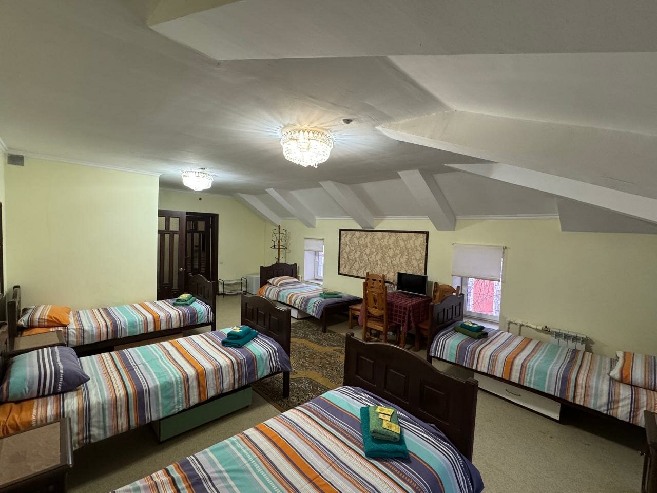 Просторный номер на пять персон со стандартными односпальными кроватями, прикроватными тумбочками, столом, телевизором.