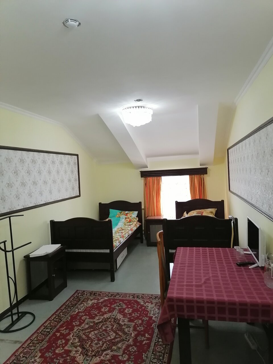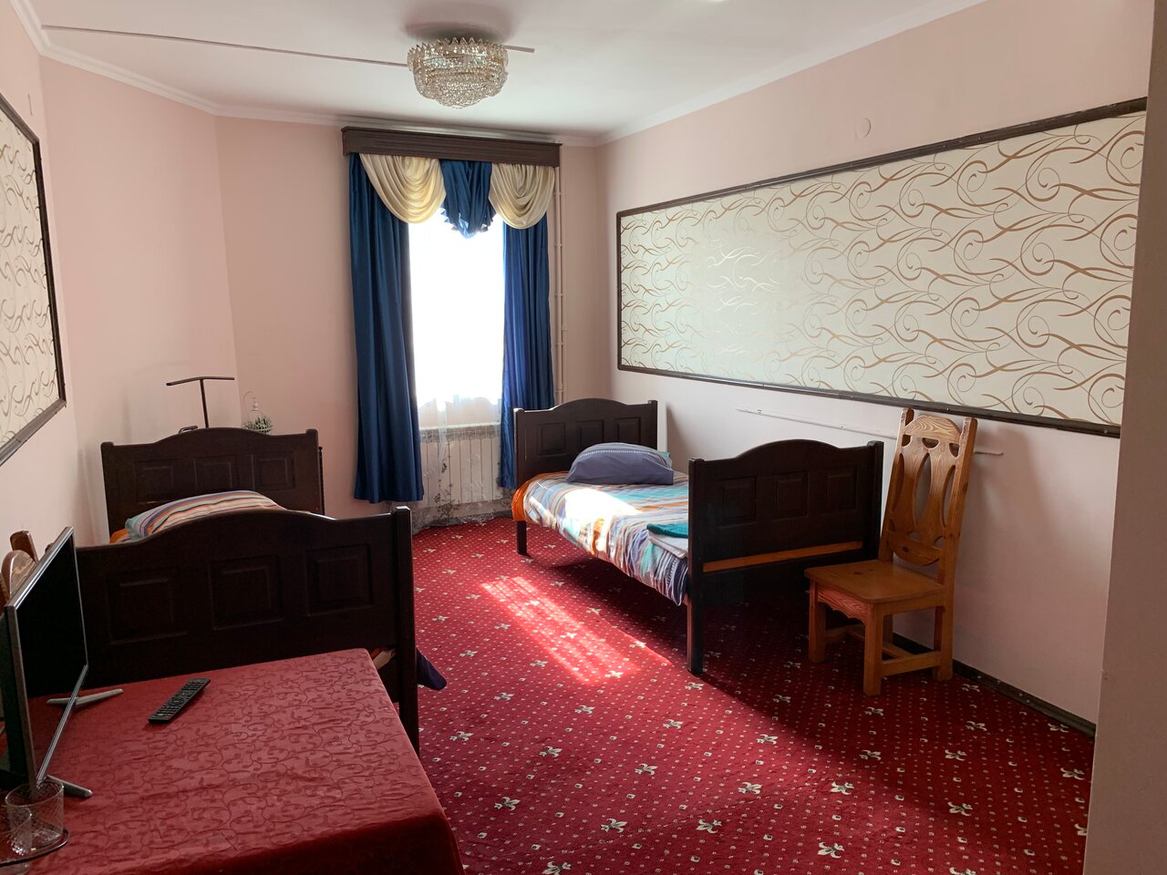 Просторные номера с тремя стандартными кроватями, прикроватными тумбочками, столом, телевизором.