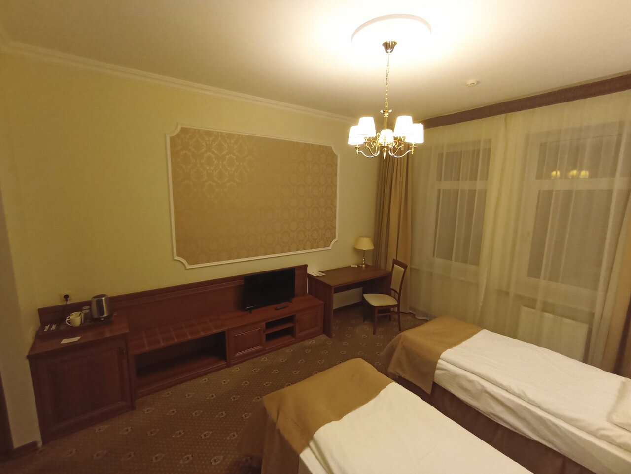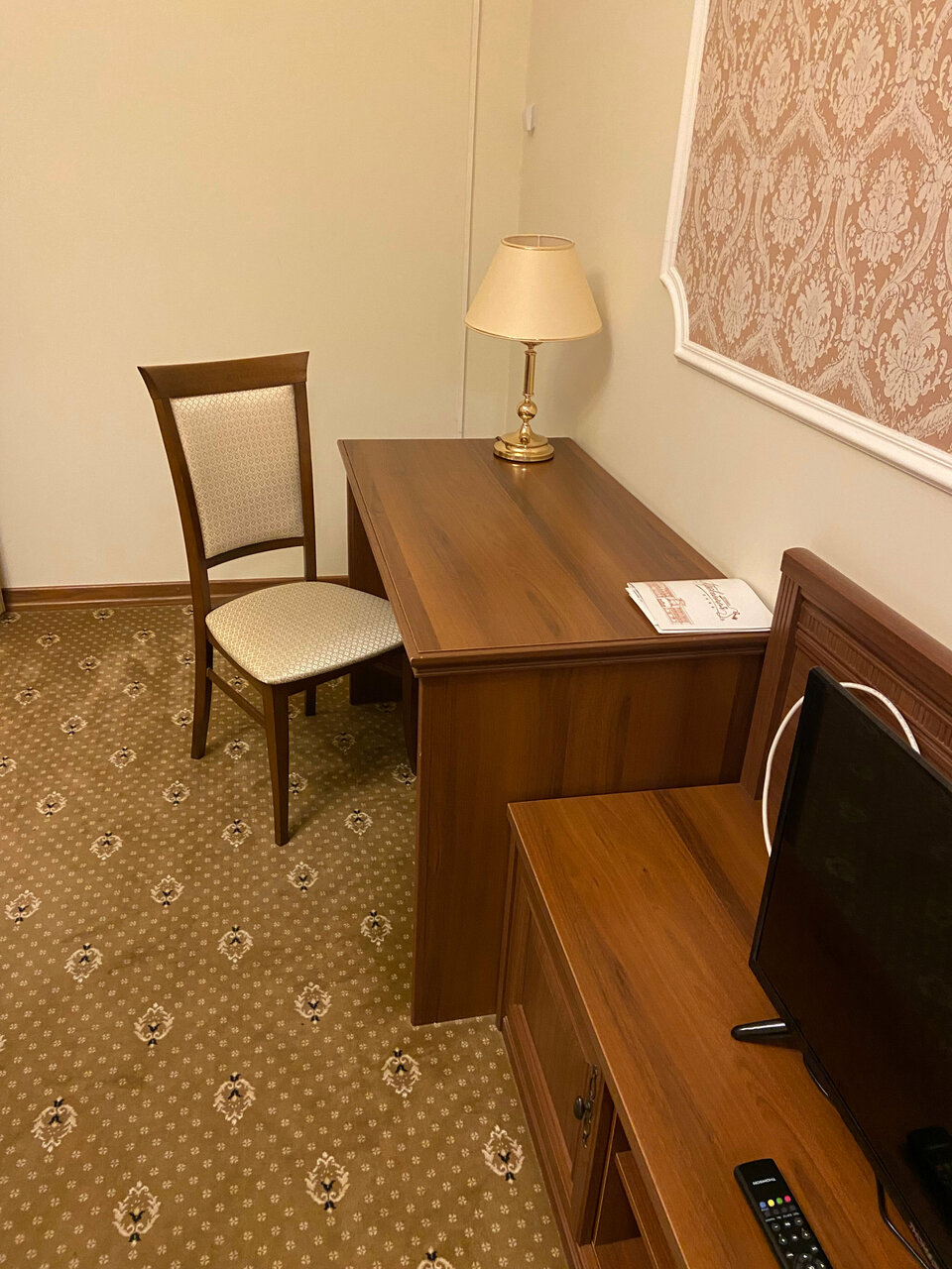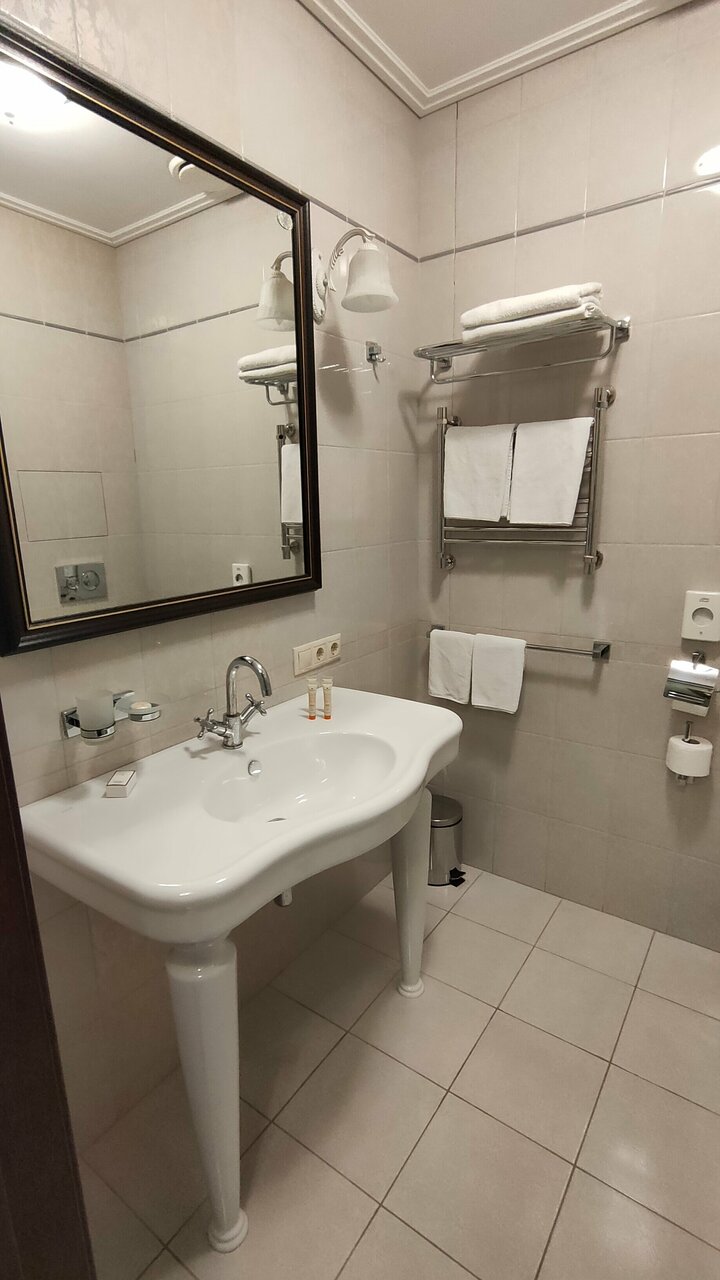 Интерьер гостиницы на пять. Номер стандарт чистый, всё необходимое есть, ванная комната очень просторная. Единственный минус это слышимость, или нам достались соседи, которые очень громко и разговаривали, и выражали свои эмоции. Жаль, что в ресторане для проживающих завтраки за отдельную плату и нет скидок, так как получается дороговато.