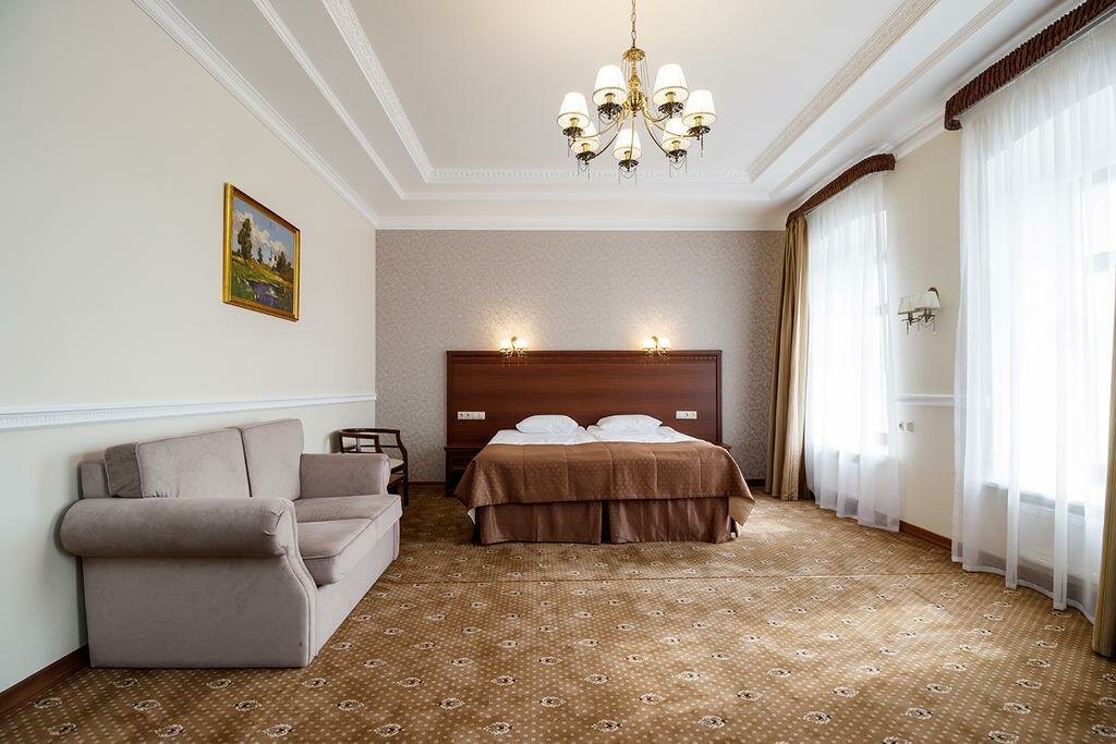 Площадь номера - 36 м²Макс. кол-во человек - 4Кровать1 большая двуспальная кроватьДиван1 диван-кроватьВид на городWi-Fi бесплатноЗавтрак доп.оплатаУборка номера ежедневноПарковка беслатная, на территории отеляКофеварка/чайник • Мини