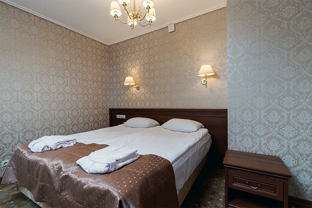 Площадь номера - 26 м²Макс. кол-во человек - 2Кровать1 или 2 отдельные кроватиВид на городWi-Fi бесплатноЗавтрак доп. оплатаУборка номера ежедневноПарковка бесплатная, на территории отеляКофеварка/чайник • Мини-бар • Сейф • Фен в номе