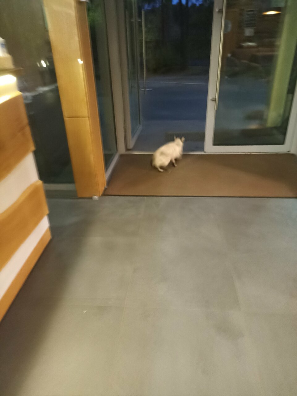 Маленький новый видимо отель, разрешено проживание с собакой, но если едете с собакой, то будьте готовы, что собаку вы там не помоете, душевая лейка стационарно закреплена наверху на стене, снять ее невозможно, гигиенического душа тоже нет. Очень большая слышимость в номере, в остальном на одну ночь вполне можно остановиться, ремонт новый, все работает исправно, кондиционера нет, завтраки приличные, холодильник один на всех в холле.