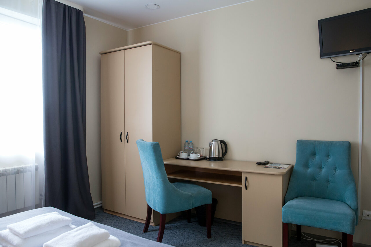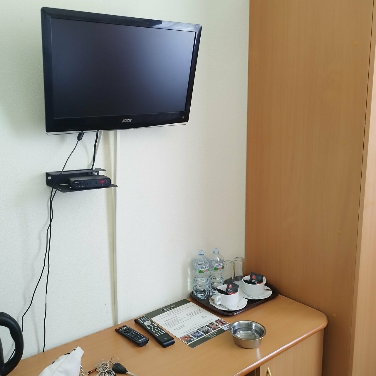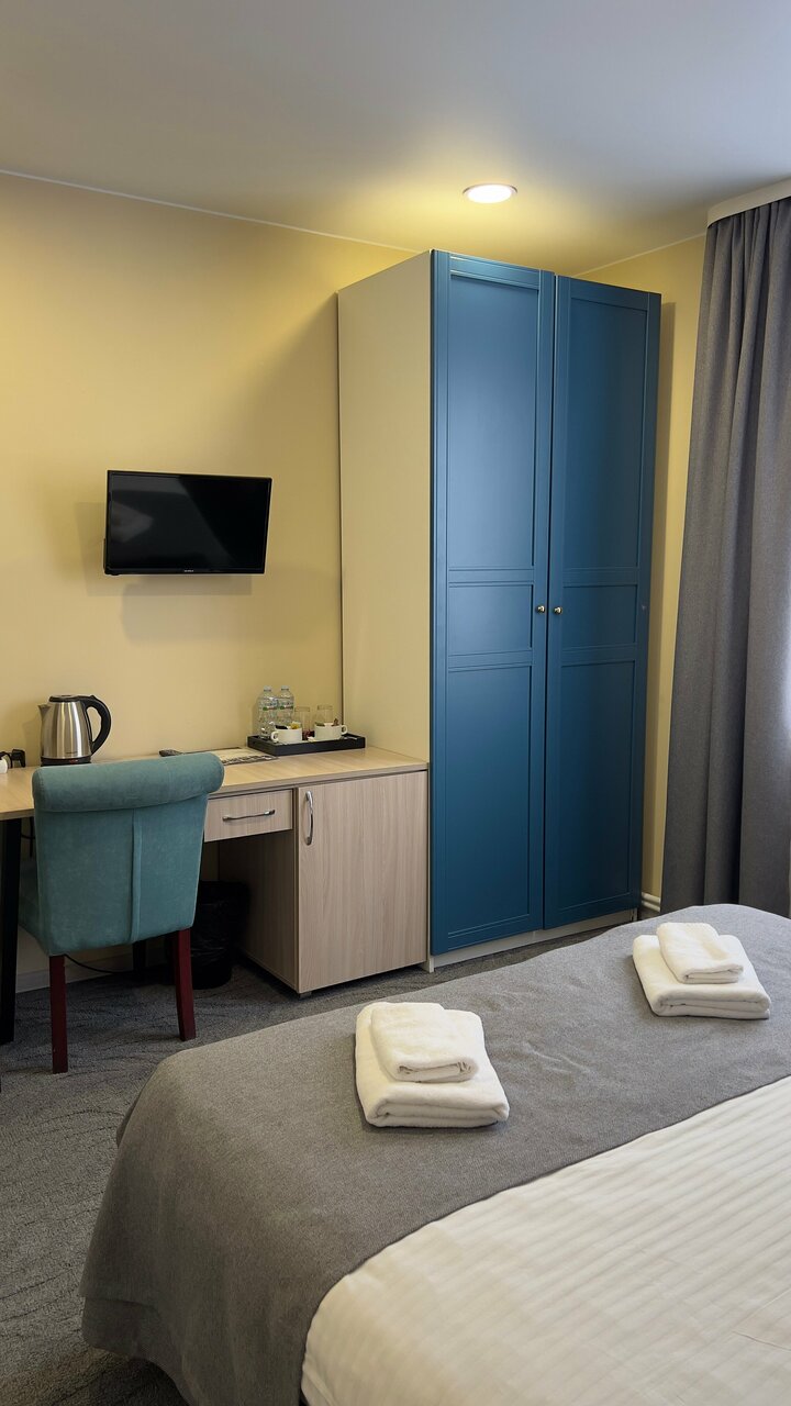 Номер на 3, сервис и персонал на 5. Номер тесен, самый большой минус — отсутствие ГВС в умывальнике, только в душе. В номер поставили микроволновку чтобы греть завтрак и не только, за что персоналу большое спасибо!