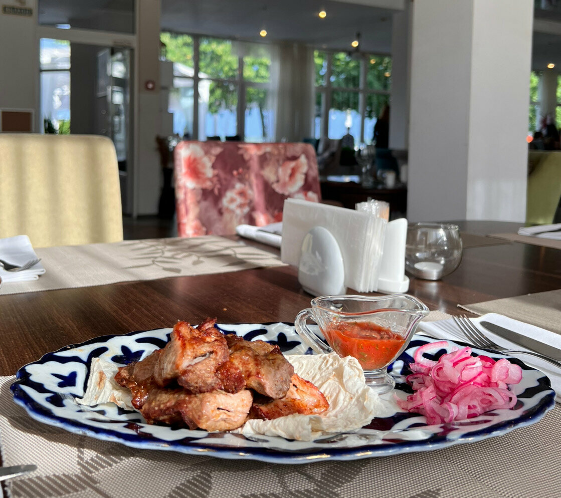К сожалению ресторан с каждым годом всё хуже и хуже. Хачапури разучились делать, шашлык из ленты вкуснее. Место хорошее.