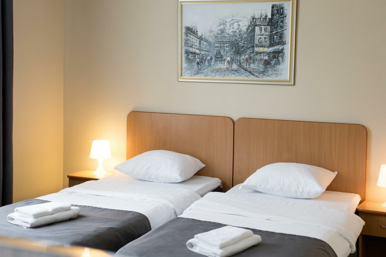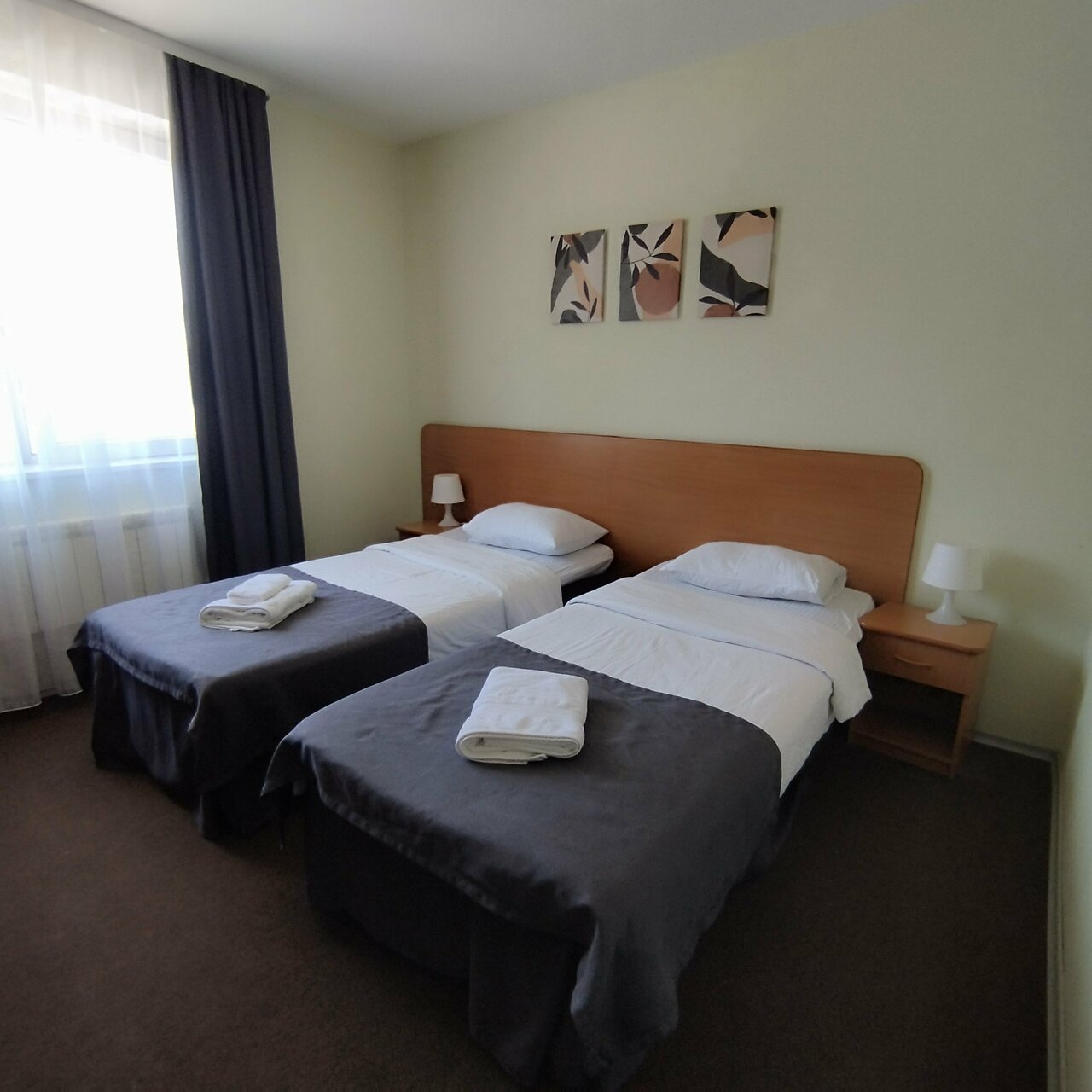 Стандарт, с двумя односпальными кроватями/с одной двуспальной кроватьюЦены:С воскресенья по четверг (включительно) 3900 руб.,Завтрак проходит с 9.00 до 13.00 в ресторане. Стоимость завтрака 450 рублей с человека. Также, для гостей отеля действ...