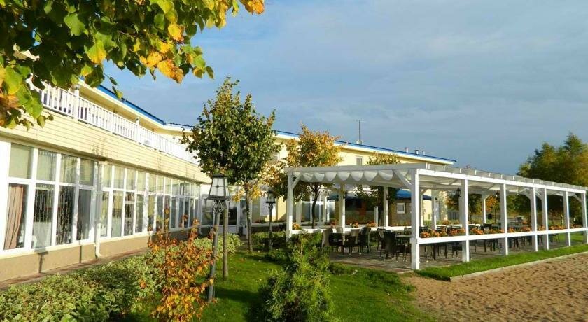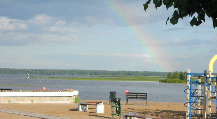Отличное расположение. Парковка. Достаточно чисто и аккуратно. Пляж с привозным белым песком. Вежливый персонал. Адекватная цена. Заказывали номера по телефону за два дня до приезда, никакой предоплаты. Брали два номера — дабл (окна на пляж) и с двумя отдельными кроватями (окна на дорогу). Второй ощутимо больше, за счет чего в нем поместился шкаф, прикроватные тумбочки, нормальный стол, да и санузел просторнее. Дабл совсем спартанский — большая кровать с двумя полочками, тумбочка (в которой предполагался холодильник, но нет) и пара стульев, но зато вид из окон лучше. Инфраструктурой не пользовались, так как только ночевали, остальное время проводили вместе со знакомыми, живущими неподалеку в Разливе. Где погулять и что посмотреть вокруг — можно увидеть на карте. Места замечательные.