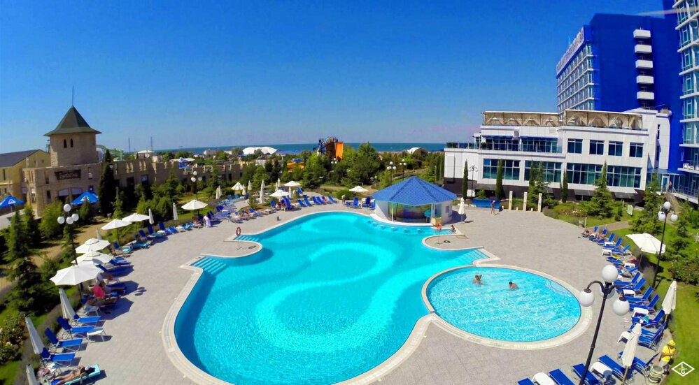 Для гостей доступны: — Бассейны (крытый, открытый, сезонный, детский), SPA, сауна, хаммам, массаж. — Пляж (галечный, с баром и шезлонгами), водные горки, прокат спортивного снаряжения. — Питание: 3 ресторана, кафе, доставка еды в номер, детское меню. — Развлечения: анимация, дискотека, казино, игровая комната, театр, вечерние программы. — Удобства: тренажёрный зал, салон красоты, конференц-зал, коворкинг, трансфер (платный), услуги няни.