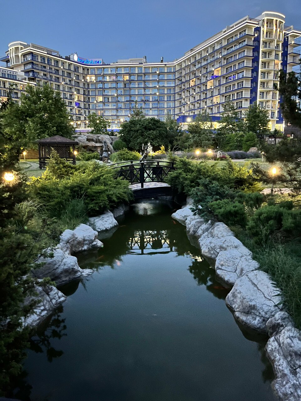Номера прекрасные, территория хорошая, аквапарк, бассейны. Питание в текущем году не порадовало, в 2022 было лучше. СПА центр отличный. В 2023 беда с пляжными полотенцами, они находятся в номерах и с ними надо таскаться в бассейн и на пляж, что очень неудобно. На пляже бесплатные лежаки, пантонный мостик для прыжков в море, волейбольная площадка. Расположение отеля отличное, около городского парка и набережной. Уборка номеров ежедневная, персонал вежливый. К посещению рекомендую.