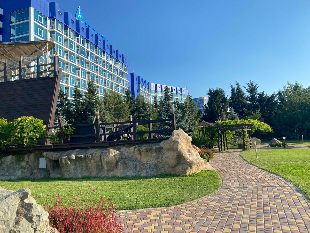 Очень хороший отель,спа-зона,кафе,рестораны на территории!Шеф-повар ресторана Абордаж-кудесник!Сама территория очень зеленая,ухоженная,большой бассейн открытый!Отдельное спасибо восстановительному центру грязелечения,его сотрудникам!