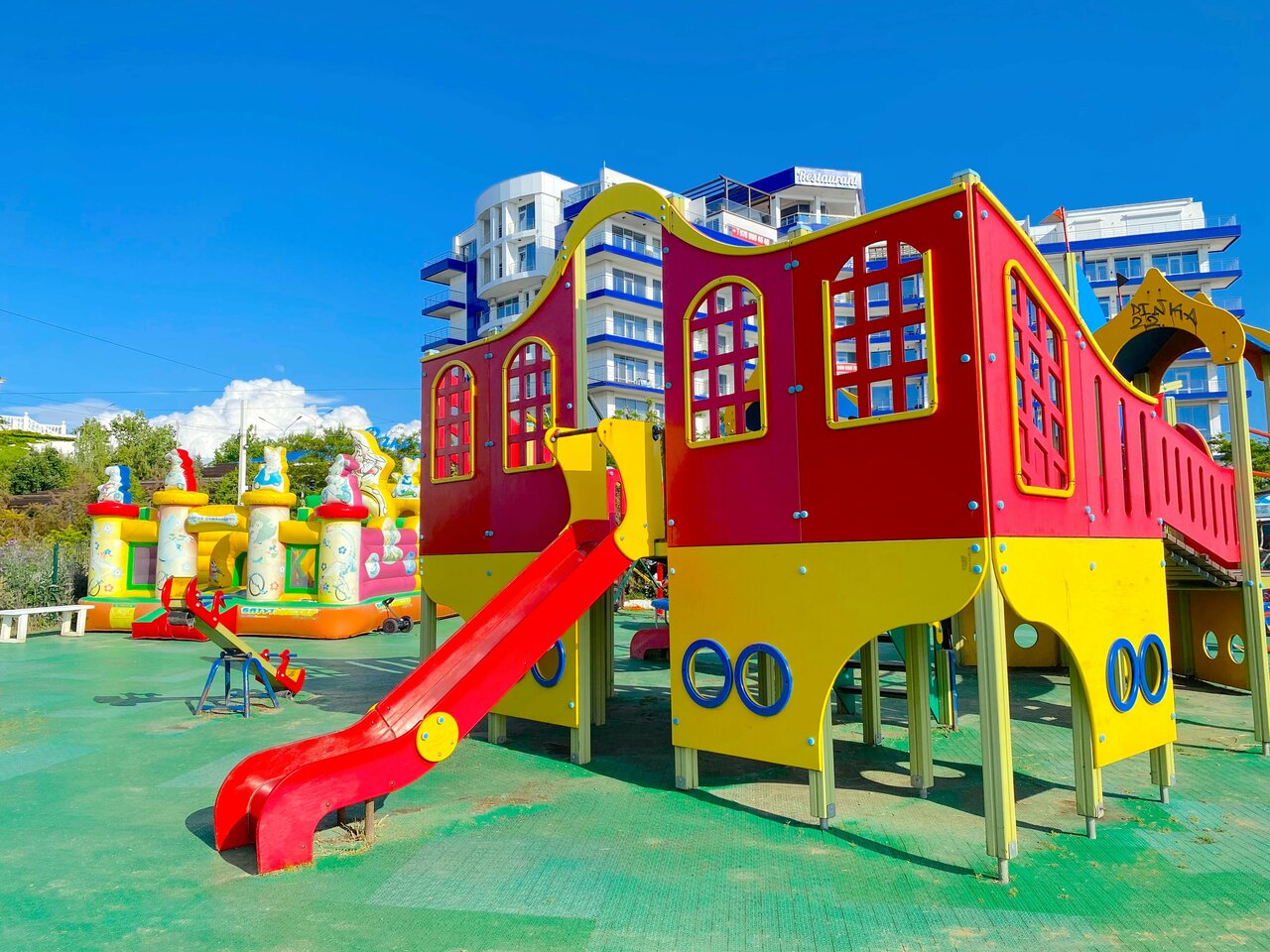 - Отличный аквапарк.; Хорошие тренировки в бассейне.; Внимательный персонал (дополнительные услуги).; Красивая территория и близость к морю.; Мало людей в несезон.