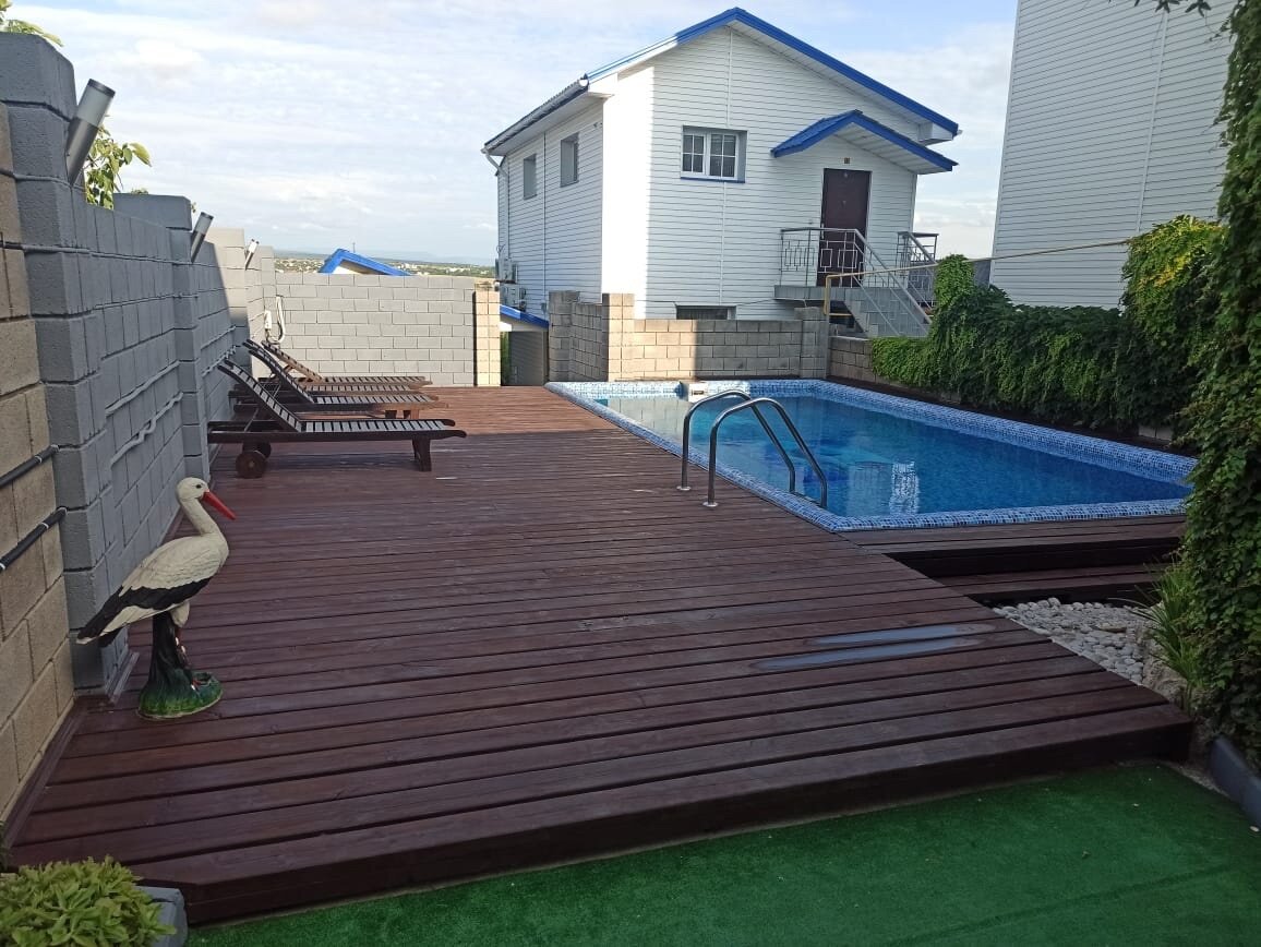 Отличное место!!! Отдыхаем компанией из 11 человек уже вторую неделю, продлили проживание !!!)) Номера шикарные, чисто, уютно, все, что нужно! До моря далековато, но прогуляться норм)) самый раз сжечь немного калорий Завтраки вкусные! Территория чистая, комфортная. Бассейн, лежаки, все — как положено