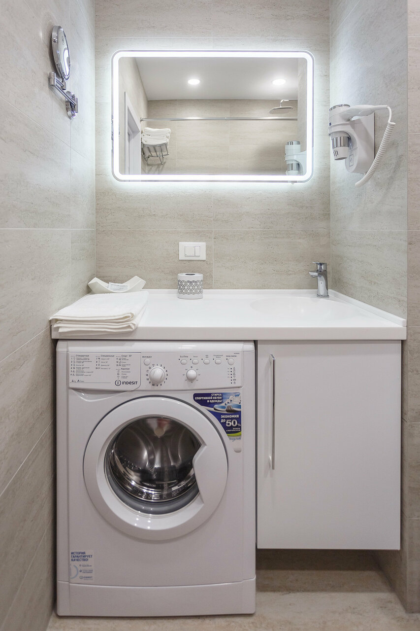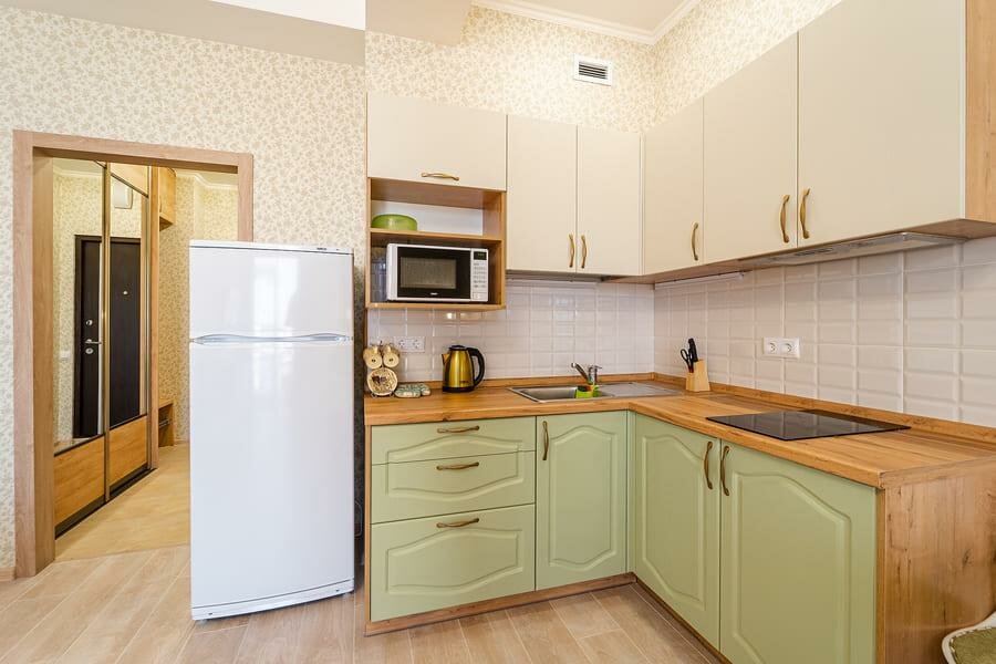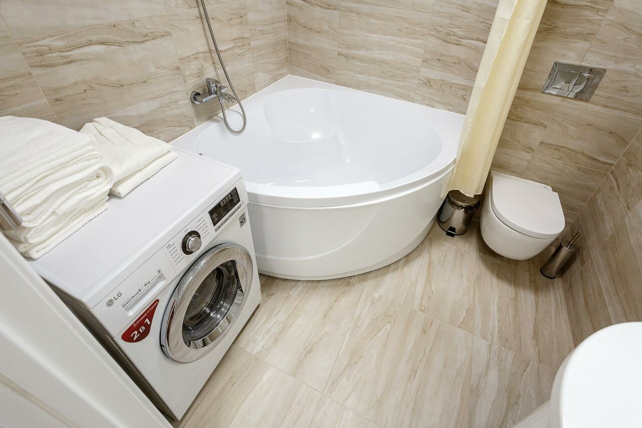 Какая гостиница супер вся техника встроенная и телевизор на всю стену, сплит отличный,микроволновка супер, холодильник, стиральная машина это реальные аппартаменты с видом на море