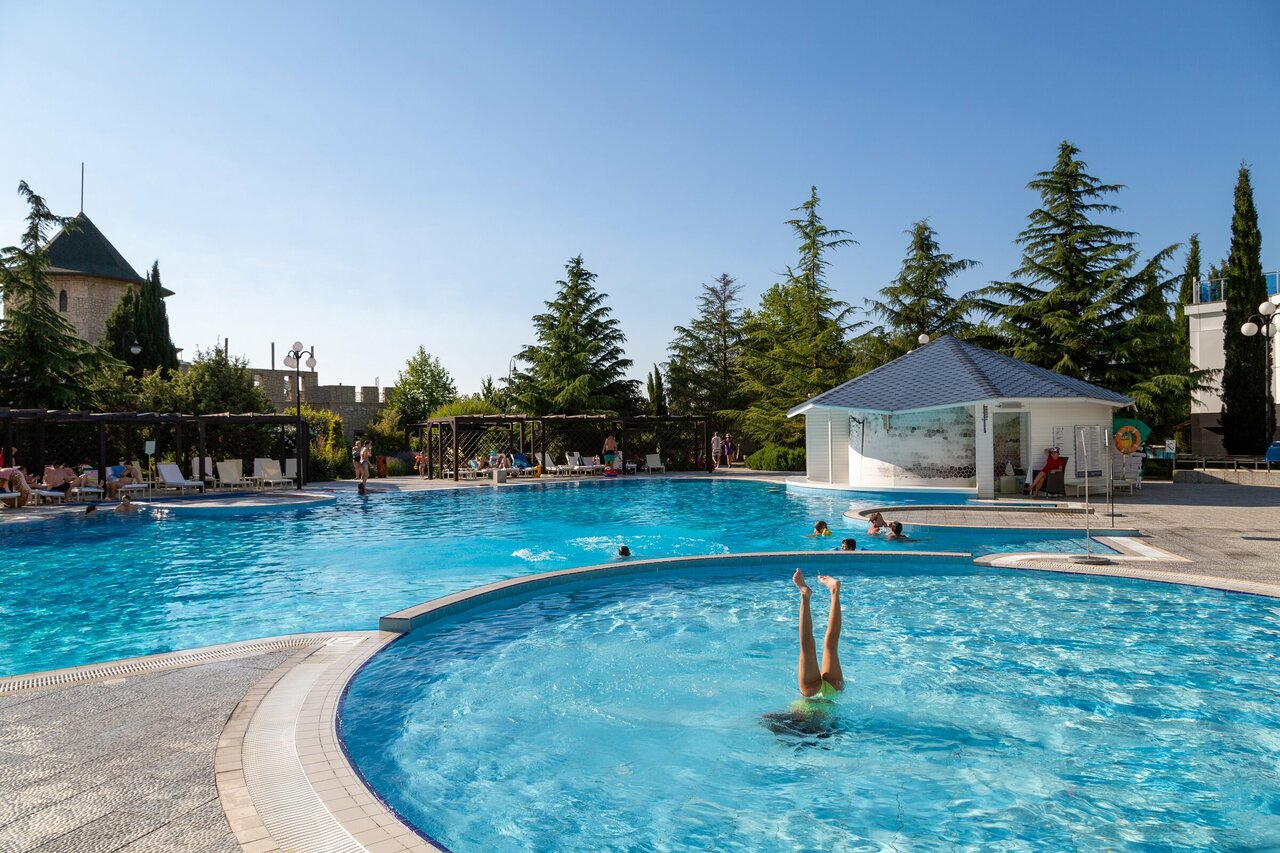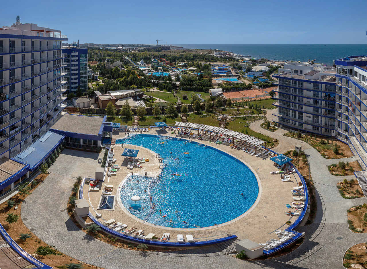 Очень крутое место для отдыха всей семьёй. Каждый может найти себе то, что ему нравится: большой пляж с удобными лежаками, глубокий бассейн с морской водой, баня, сауна, крутые рестораны разной кухни. Рядом самый большой в Крыму Аквапарк ‘Зурбаган’. Я там был и вам советую там побывать