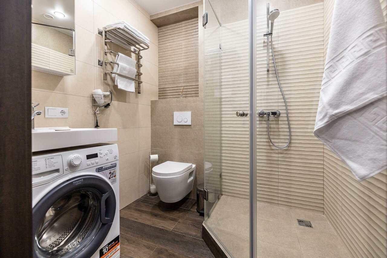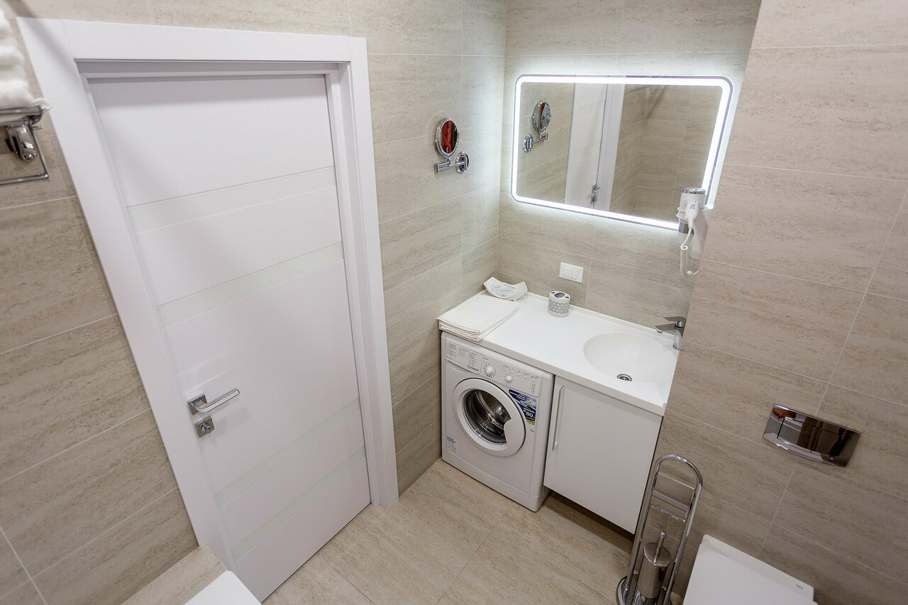 - Бесплатный банный комплекс (для некоторых апартаментов).; Чистота и ухоженность территории.; Вежливый и отзывчивый персонал.; Красивый вид из окон.; Близость к морю и набережной.