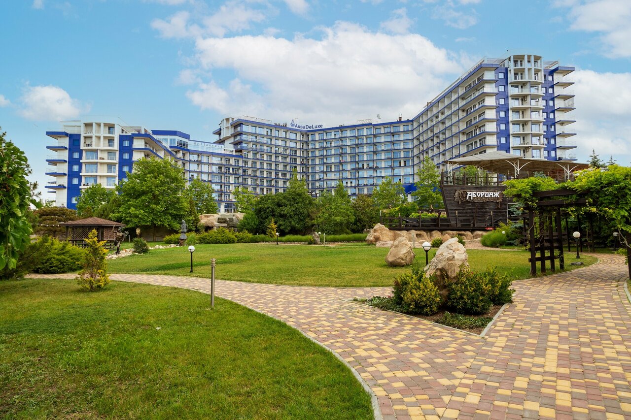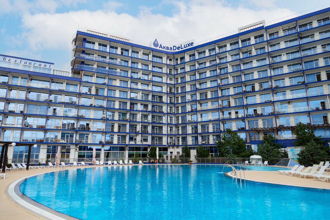 Провели 3 дня в апартаментах Акваделюкс. Отличные ПРОСТОРНЫЕ апартаменты со свежим ремонтом и всеми удобствами. На территории тёплый бассейн с соленой водой, лежаками, навесом. Так же есть рестораны, но их услугами не пользовались. Рядом на пляже много ресторанчиков и кафе с вкусной едой на любой вкус по более низким ценам. Такси в центр 350-450р, приезжает быстро. Единственное неудобство — рядом нет хорошего супермаркета, позаботиться о покупках нужно заранее. Остались очень довольны. Друзьям с уверенностью бы рекомендовал и сам однозначно вернулся бы.