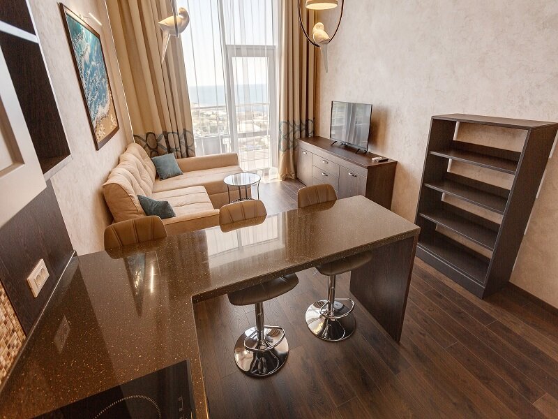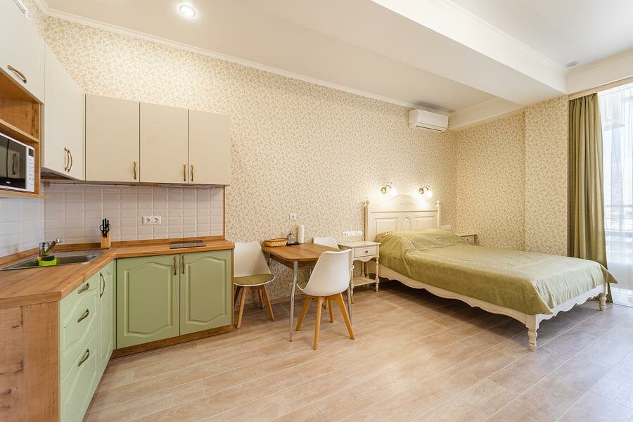 Однокомнатные апартаменты, 40 - 45 кв. м. Возможно: 2 основных и 1 дополнительное место (раскладной диван).
