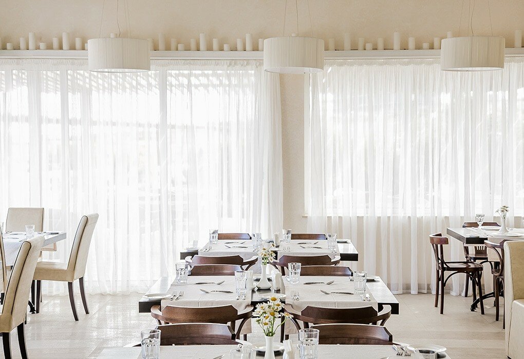 Заезд: 14:00, выезд: 12:00. Доступны варианты питания: «всё включено», полный пансион, полупансион.