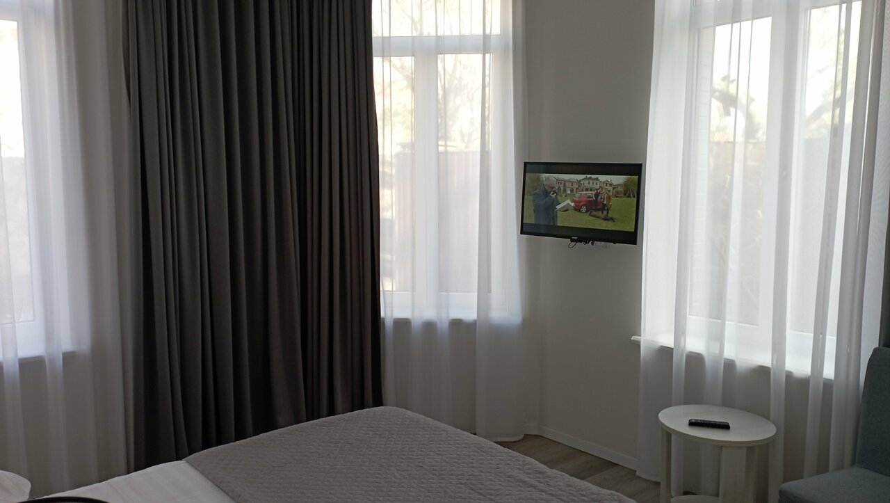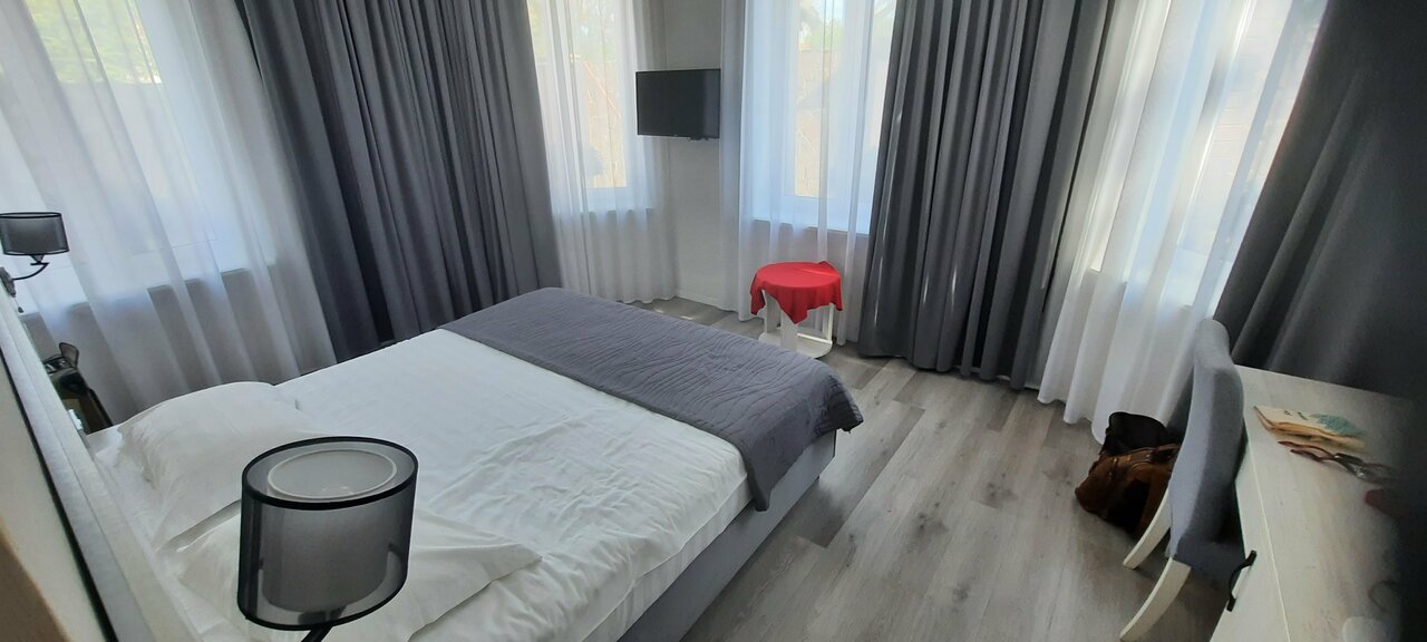 Неплохая гостиница с отличной локацией недалеко от центральной набережной. В фойе уютно, есть кофемашина с неплохим кофе, так же есть чайник и много разновидностей чая, приятно порадовали сладкие печеньки на блюдце, пополнялось регулярно. Парковка во дворе на 5 авто, но ворота во дворе круглосуточно открыты. Номера в порядке, чисто, хорошие матрацы, Санузел просторный. Теперь о минусах, сильный запах канализации если забыл закрыть дверь в санузел и не открыл окно. Еще не понравился обман на ресепшене, когда бронировали, обговаривали определенный номер, по факту заселили в менее комфортный. При просьбе переселить в оговоренный номер, получили отказ с мотивацией, что вы приехали всего на 3 дня, а ваш номер отдали клиентам приехавшим на более долгий срок.