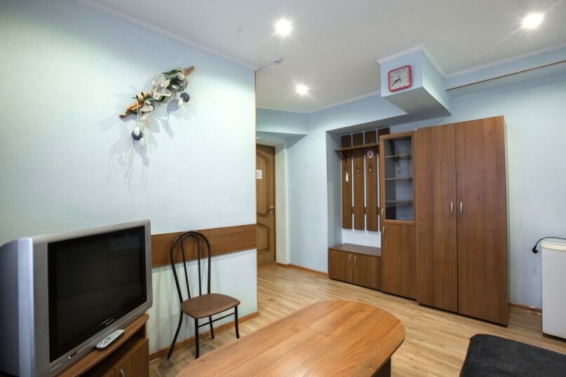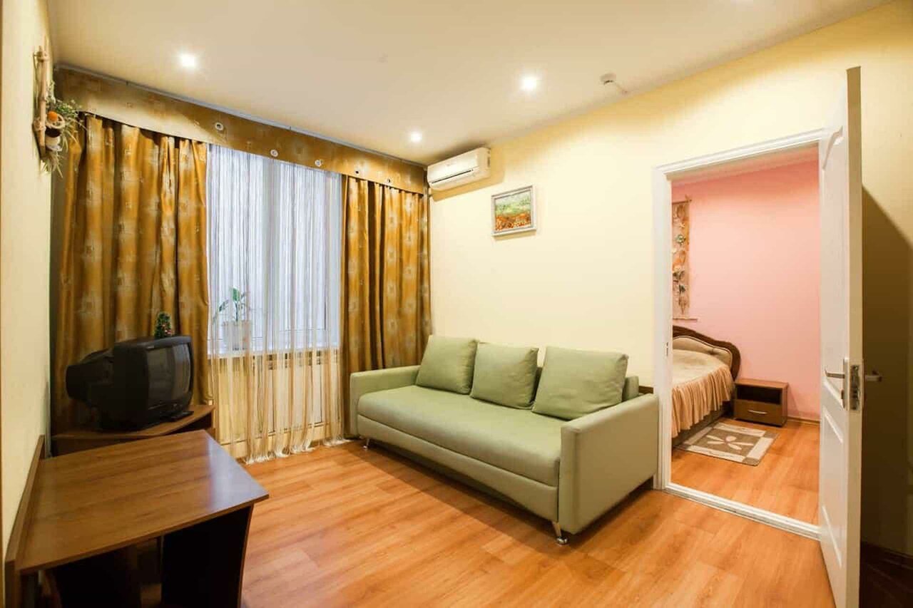Хорошее местоположение. Рядом продуктовые магазины, вокзал, остановка. В номере все минимально необходимое есть, места немного, но достаточно, если приехали гостем посмотреть город