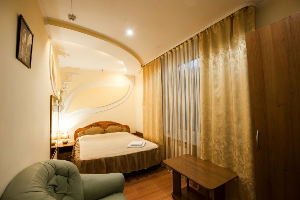 Отель маленький,чистый и уютный. В номере есть все необходимые принадлежности. Он правда небольшой,в стандартном номере одна кровать и всё, шкафа нет,но для одной ночёвки вполне подходит,рядом Автовокзал,до центра можно доехать на автобусе или пройти пешком, около 30 минут,рядом конечно же дома старые и кажется,что очень страшно,но вполне прилично