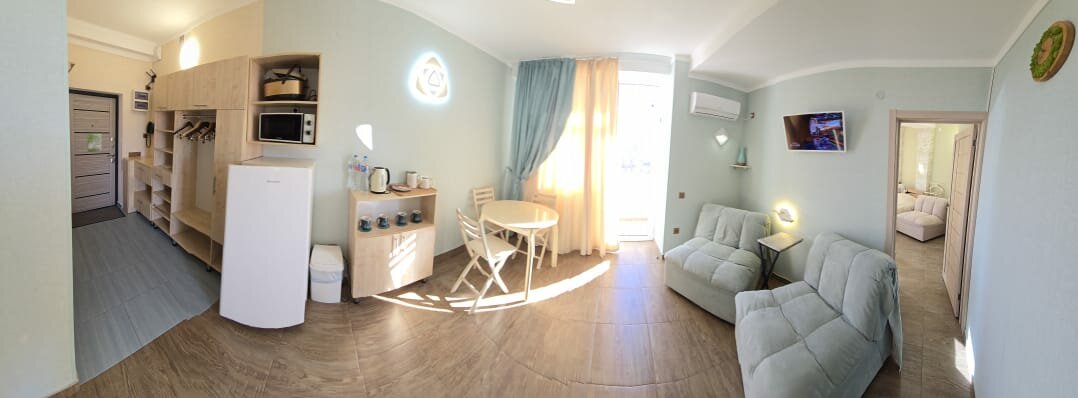 Отдыхаем в БлагоЛюбоМорье уже не первый раз. Обычно берём панорамный Гармония, номер шикарный, вид с окон на море. В этот раз сняли двухместный номер 104,были первые после ремонта. Сказать, что номер хороший, это ничего не сказать. Номер ОБАЛДЕННЫЙ ванная комната большучая, даже есть стиралка,спальня уютная зал комфортный,две кондишки,телеки со Смарт ТВ, в общем очень крутотеперь только его и будем заказывать Персонал вежливый, отзывчивый, добродушный, всё подскажут, расскажут. Спасибо Вам большое Процветания Вам и побольше хороших и благодарных гостей